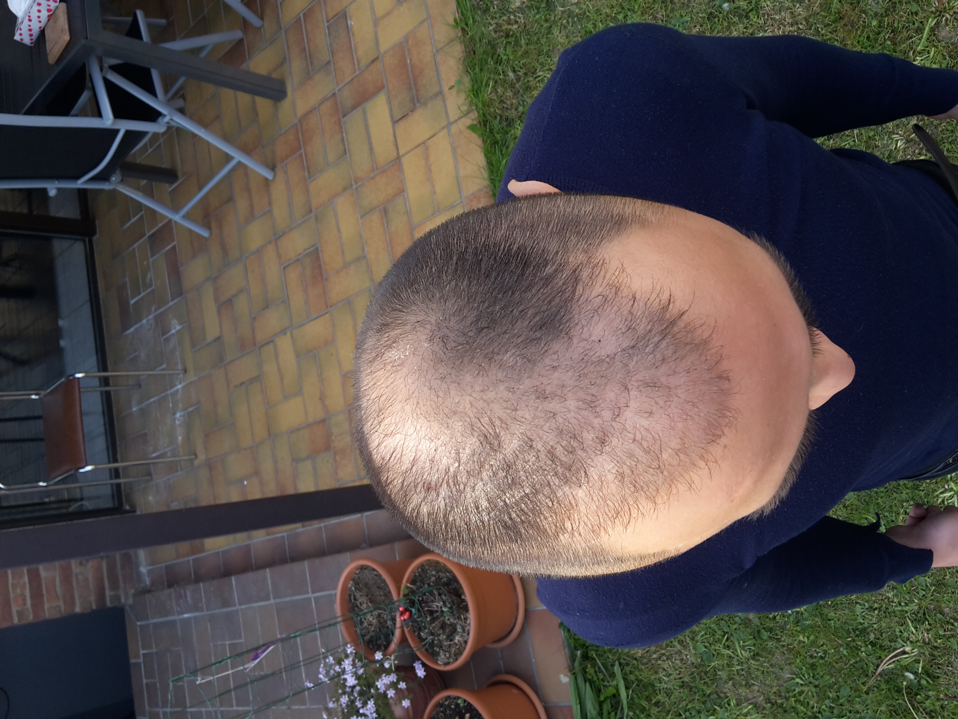 Wie kurz trägst du deine Haare auf dem Foto? Man sieht seitlich schon deutlich die Ausdünnung und Narben im Donor.