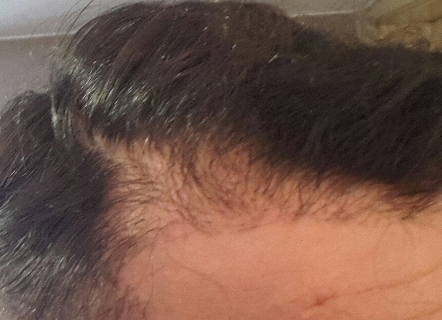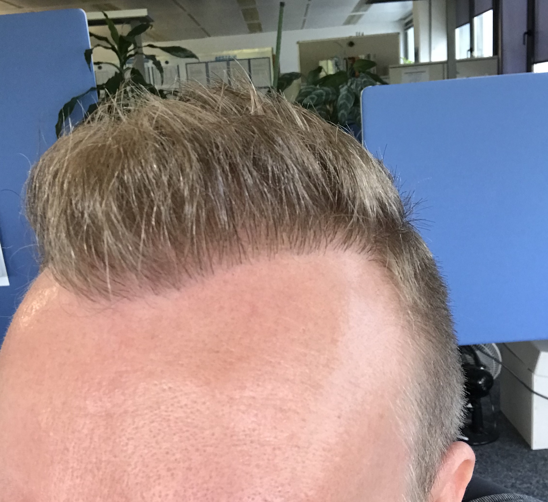 Wenn ich ganz nah im Spiegel schaue, sehe ich, dass da noch ein paar Haar kommen, so dass die Haarlinie noch natürlicher wird (ist zumindest meine Hoffnung).