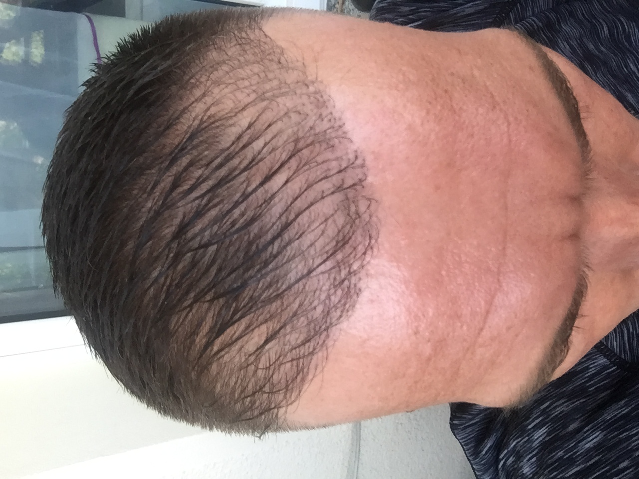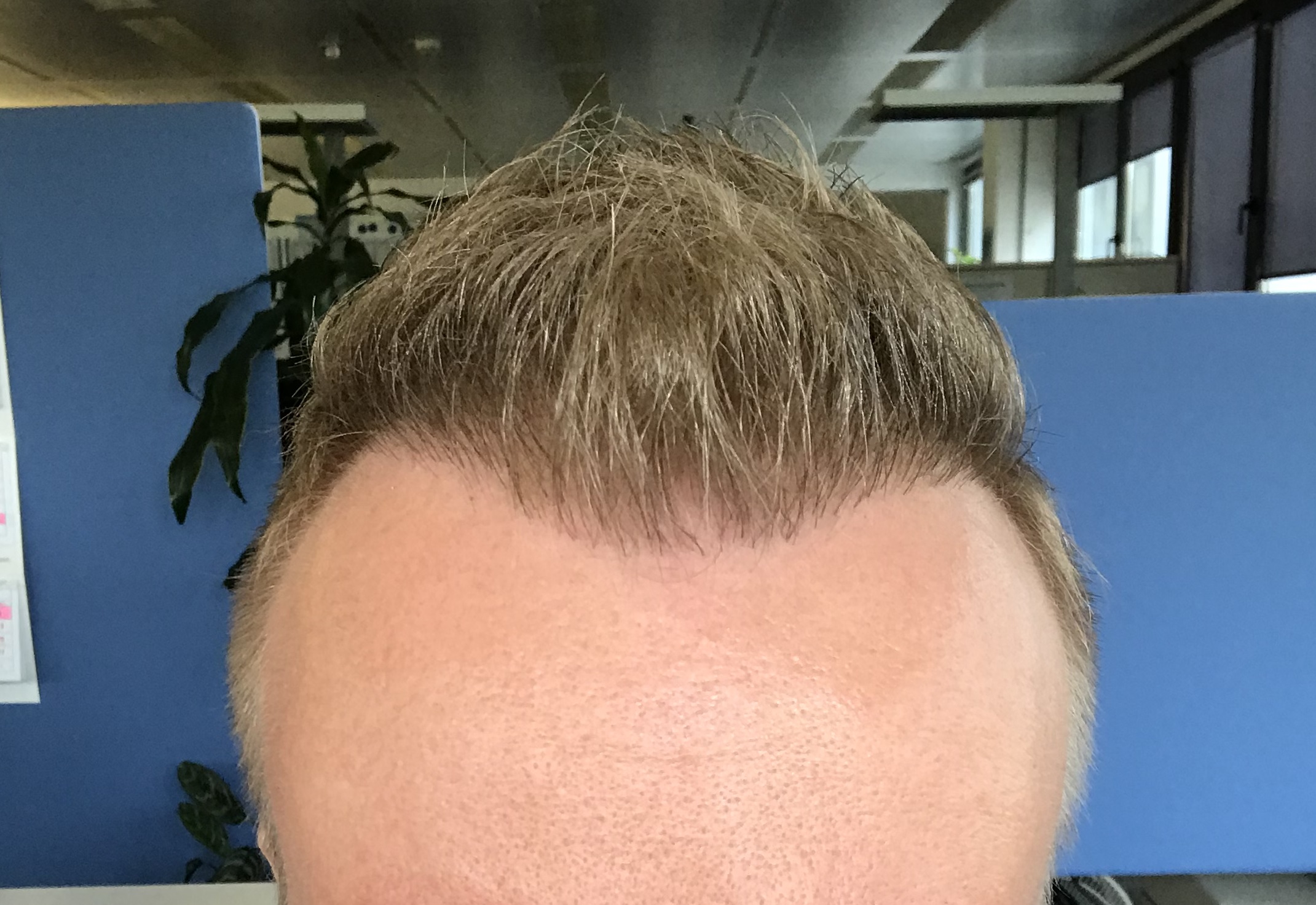 Bei der Myperfecthairclinic bucht man laut Aussage von Dr. Saalfrank eine Dienstleistung. Dies wird so ausgelegt, dass vorab eine grobe Schätzung der zu verpflanzenden Grafts parallel zum Angebot gemacht wird. Er versicherte mir, dass wenn im Endeffekt mehr Grafts benötigt werden, keine Mehrkosten anfallen werden. Kurios ist halt, dass weder bei der Graftentnahme noch beim Stechen der Kanäle jemand zählt. Ich weiß also nicht wieviele Grafts tatsächlich verpflanzt wurden. Dr. Saalfrank sagte mir, das Dr. Tsounis höchstens eine 40 er Dichte wegen den sonst geringeren Anwuchsraten anstreben würde. Kurz bevor mir die Grafts ausfielen sah das alles auch super aus obwohl die Haare sehr kurz waren. Also zumindest rein optisch war die Dichte wirklich ok. Ich frage mich halt wieviel man nach 4,5 Monaten noch an Neuwuchs erwarten kann. Ich habe jetzt nochmal 2 Bilder mit Blitz gemacht, wo man evtl. etwas mehr erkennen kann.