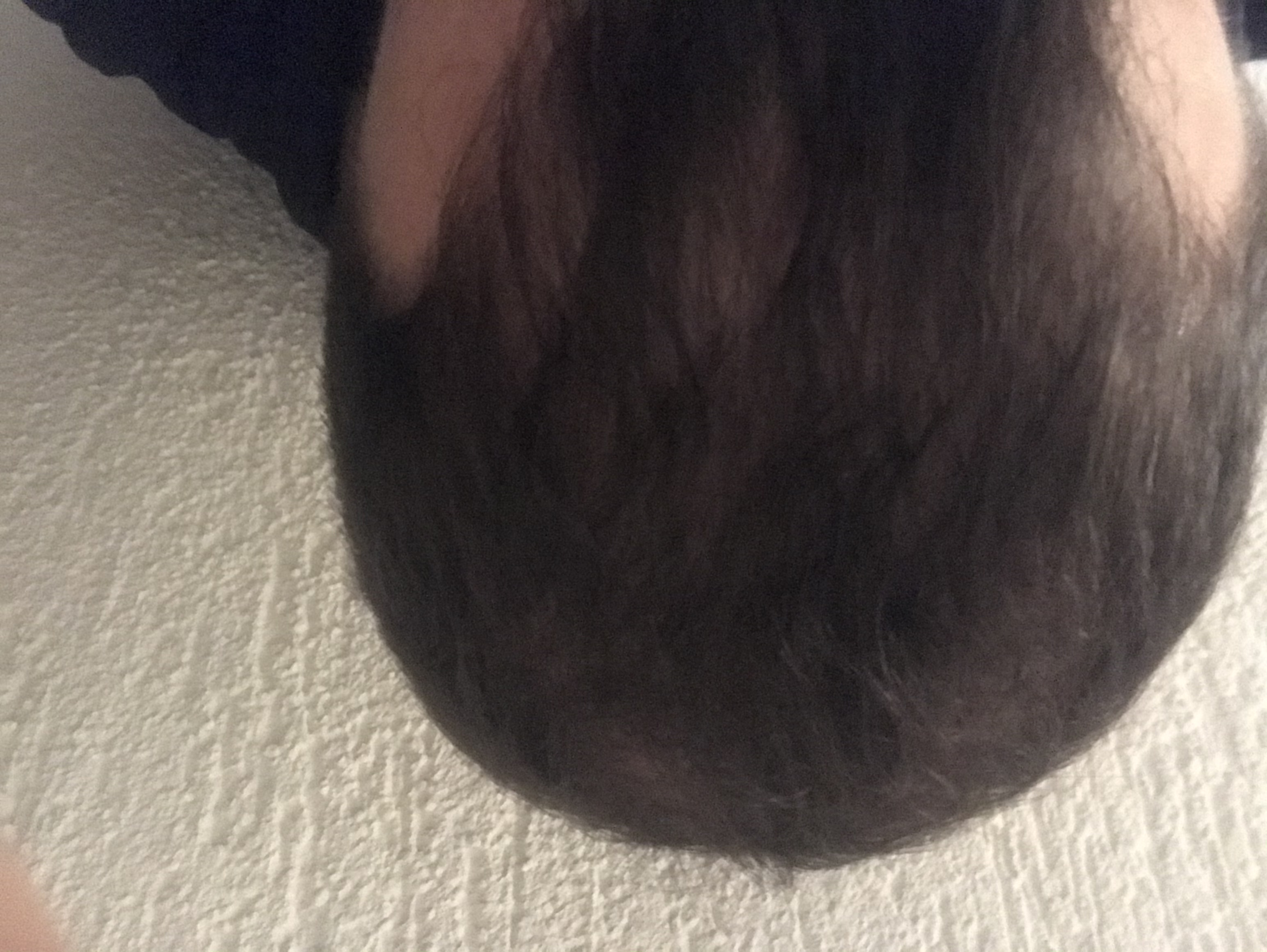 * Aktueller Haarstatus nach der Hamilton-Norwood-Skala: vermutlich auf dem Weg zu mindestens III Vertex