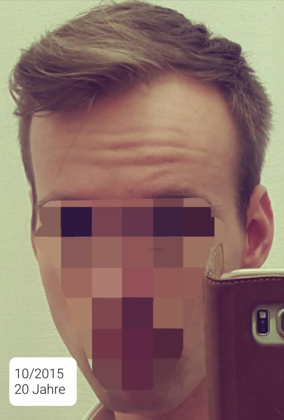 * Ausfallverlauf (schnell/langsam?): langsam/ gar nicht? Geheimratsecken schon seit immer. Schläfenpartie war nie vorhanden. Im Laufe der Jahre ist die Haarlinie vielleicht um nen halben cm nach hinten gewandert. Nie starken Haarausfall oder Massen an Haaren auf dem Kopfkissen oder in der Dusche.