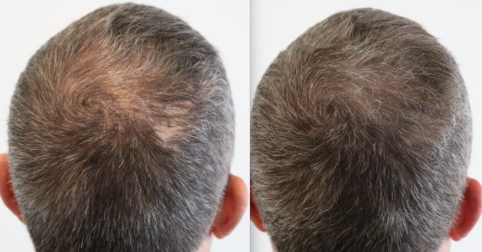 Rechts: Nach 3 Sitzungen Haarpigmentierung, um den Dichteeffekt zu erhöhen