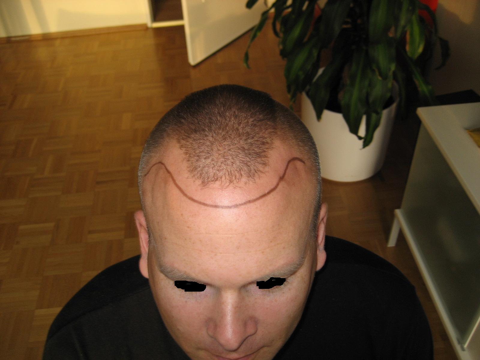 Ich trage die Haare immer sehr kurz, Seiten 0-6 mm und oben 3-12 mm. Früher hatte ich ne richtig coole Bürste auf`m Kopp und jetzt nur noch so Reste. Schade ist, daß der Haaransatz so weit oben ist. Nun ist der "goldene" Schnitt vom Gesicht hinüber. Bin am schwanken, zwischen Mini HT, mittel oder groß. Siehe Fotos. Mini könnte mir schon weiterhelfen, sollte mit FUE gehen. Mittel weiß ich nicht, war bei einem sehr bekannten Arzt. Der war sehr nett und ehrlich und hat gesagt, daß er die Seitenkante mit FUE nicht so scharf hinkriegt. Und ich brauch es scharf, so wie ein Maisfeld möglichst Smile. Oder ich mach mir ne ganz neue Front mit 3000+ Graft mit Strip.
