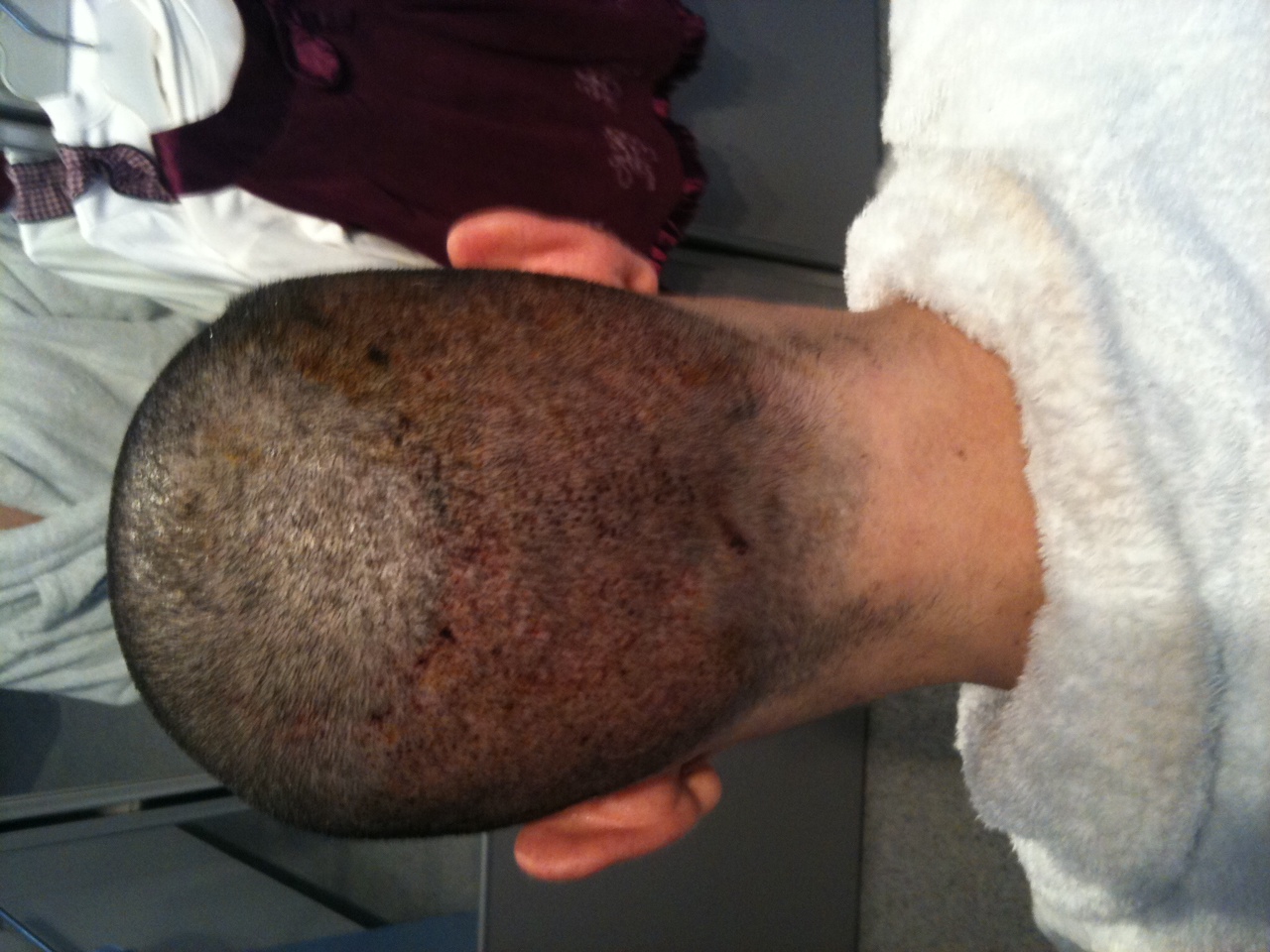 Am nächsten morgen sind wir dann alle zusammen zu Frühstück gegangen. Der Fahrer hat uns dann abgeholt und zur Klinik gebracht, wo Dr. Özgür und sein Team bereits auf mich warteten. Danach ging es als erstes ans Haare schneiden. (2mm-Schnitt) Ich wusste das schon und hatte damit auch kein Problem. Anschliessend haben wir die Haarlinie besprochen, ausgemessen und eingezeichnet. So, dann ging es auch schon los. Dr. Özgür hat mich während der ganzen OP sehr gut geführt und betreut. Hat mir jeden Schritt vorher angesagt und mich bereits mental darauf vorbereitet. Als erstes wurde die Stelle betäubt, an der die Haare extrahiert wurden. Danach hat er mit der Extraktion begonnen, was ca. 2h - 3h dauerte für 650 Grafts. Wir machten dann eine kleine Pause, ca. 30 min. und setzten die entnommenen Grafts dann gleich ein. Auch da wurde mir vorher die behandelnde Stelle betäubt und dann bearbeitet. Danach gab es Mittagessen und eine Pause. Total ca. 1.5h. Am Nachmittag das gleiche Programm nur dann mit 450 Grafts. Das war dann auch schon der erste Tag.