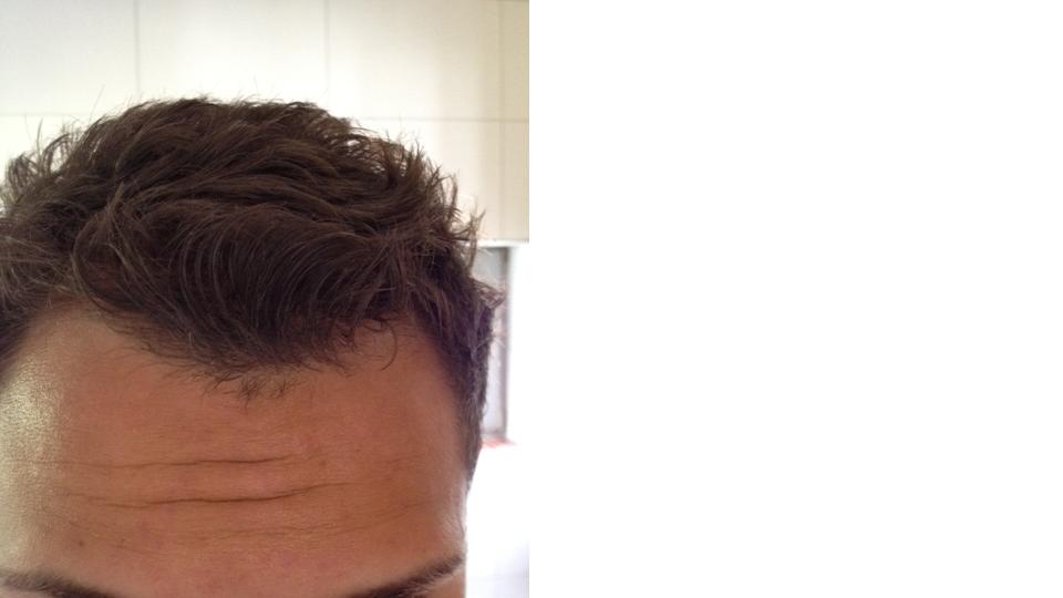 - um es sich besser vorzustellen, von meinem Haaransatz ganz vorn bis zu den Brauen sind es am tiefsten Punkt 4,5 cm