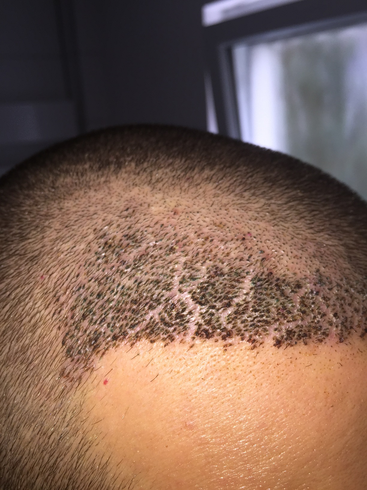 Servus ich wurde am 18.08.2015 OP also recht frisch ich habe 2 Bilder das 1 ist eig frisch nach der op glaub so 3 Tag aber nach dem 3 tag Bildeten sich durch die starke Trocknung der Kopfhaut so eine art Risse wie bei trockenen Wüstenböden naja seht selber ist das normal hatte das jemand nach seine OP sind die haare Zwischen den rissen weg oder hat sich einfach nur die haut etwas verschoben durch die Austrocknung ?mir ist nicht aufgefallen das irgend welche haare ausgefallen sind das würde man ja sehen oder merken durch Bluten oder sowas in der art ? ich habe so ein Vitamin Spray bekommen kann mir jemand sagen ob das normal ist oder ob jetzt irgend was beschädigt ist ? es sieht einfach aus wie so Risse im Wüstenboden der ausgetrocknet ist ich benütze das Vitamin Spray aber keine Ahnung frage ist einfach ist so was normal ?