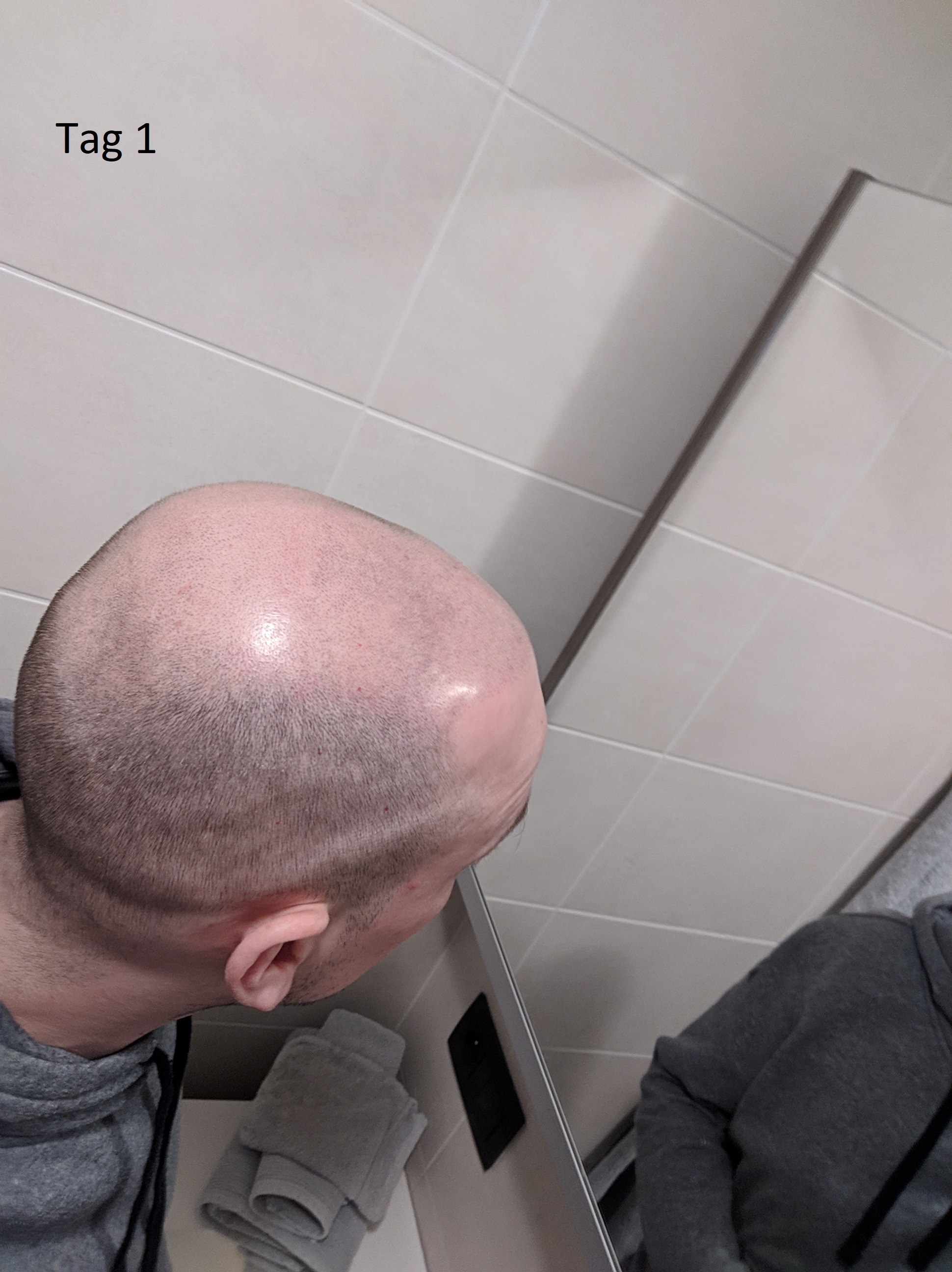 Also habe ich mich zuerst mit dem Thema Haartransplantation beschäftigt. Nach Rücksprachen mit mehreren Klininken wurde mir aber schnell klar, dass mir das nach dem derzeitigen Stand der Technik nicht weiterhilft. Ist ja (noch) keine Haarvermehrung, sondern nur eine Umpflanzung. Mir wurde auch von einigen Kliniken klar von einer HT abgeraten, da kein tolles Ergebnis zu erwarten ist. Da ich jetzt aber nicht sofort aufgeben wollte habe ich mich weiter mit dem Thema beschäftigt und bin auf die Microhaarpigmentierung gestoßen. Da fallen ja schnell mal die Namen von Milena Lardi und Sabine Dillen. Die Ergebnisse von den beiden im Internet, die ich gefunden habe, sehen ja wirklich gut aus. Leider habe ich mir zwischendurch auch verschiedene Bilder von der MHP bei Instagram angesehen die mich abgeschreckt haben, gerade die Amerikaner mit ihren superkünstlichen Haarlinien. Trotzdem habe ich mich aber zur MHP durchgerungen und habe einen Termin bei der Prohairclinic in Belgien vereinbart. Passte für mich auch ganz gut, da ich in NRW wohne. Der Kontakt war sehr nett und ich habe dann für den 11. und 12. April meine ersten Termine bekommen. Den 3. Termin habe ich am 9. Mai. Am 1. Tag wurde mir dann erstmal noch alles von Sabine und Bart zum Ablauf erklärt. Danach ging es nach oben ins Behandlungszimmer und es wurden einige Fotos aus verschiedenen Winkeln gemacht. Danach habe ich mit Sabine die Haarlinie besprochen und dann ging es auch schon los. Das ich nebenbei auf dem Ipad Netflix schauen konnte, fand ich schonmal sehr praktisch. Gegen Mittag gab es dann etwas zu Essen. Ich fand auch das Stechen am ersten Tag nicht wirklich unangenehm. Am Ende des ersten Tages war ich dann schon sehr erleichtert, da ich mit dem Ergebnis der ersten Sitzung sehr zufrieden war. Der Ablauf des zweiten Tages war gleich. Allerdings muss ich zugeben, dass ich das Stechen am 2. Tag doch deutlich gespürt habe, da die Haut vom Vortag etwas gereizt war. Kann man aber trotzdem ganz gut aushalten. Am Ende der zweiten Sitzung wurde mir von Sabine erklärt, auf was ich die nächste Zeit zu achten habe. Man bekommt dann ein spezielles Haarshampoo sowie ein Serum und ein Merkblatt mit. Die nächsten 48 Stunden hat man auch eine leichte Rötung auf dem Kopf. Ich bin mit dem Ablauf und dem Ergebnis bis jetzt sehr zufrieden. Es ist bisher nur positiv aufgefallen. Ein guter Freund fragte mich, warum ich wieder soviele Haare auf dem Kopf habe . Tut gut . Außerdem habe ich jetzt endlich nicht mehr beim Blick in den Spiegel das Bedürfnis mir eine Mütze aufzusetzen, hätte ich sonst am liebsten auch bei 30°C gemacht. Ich freue mich jedenfalls auf den dritten Termin und das finale Ergebnis und werde dann auch noch Bilder davon hochladen.