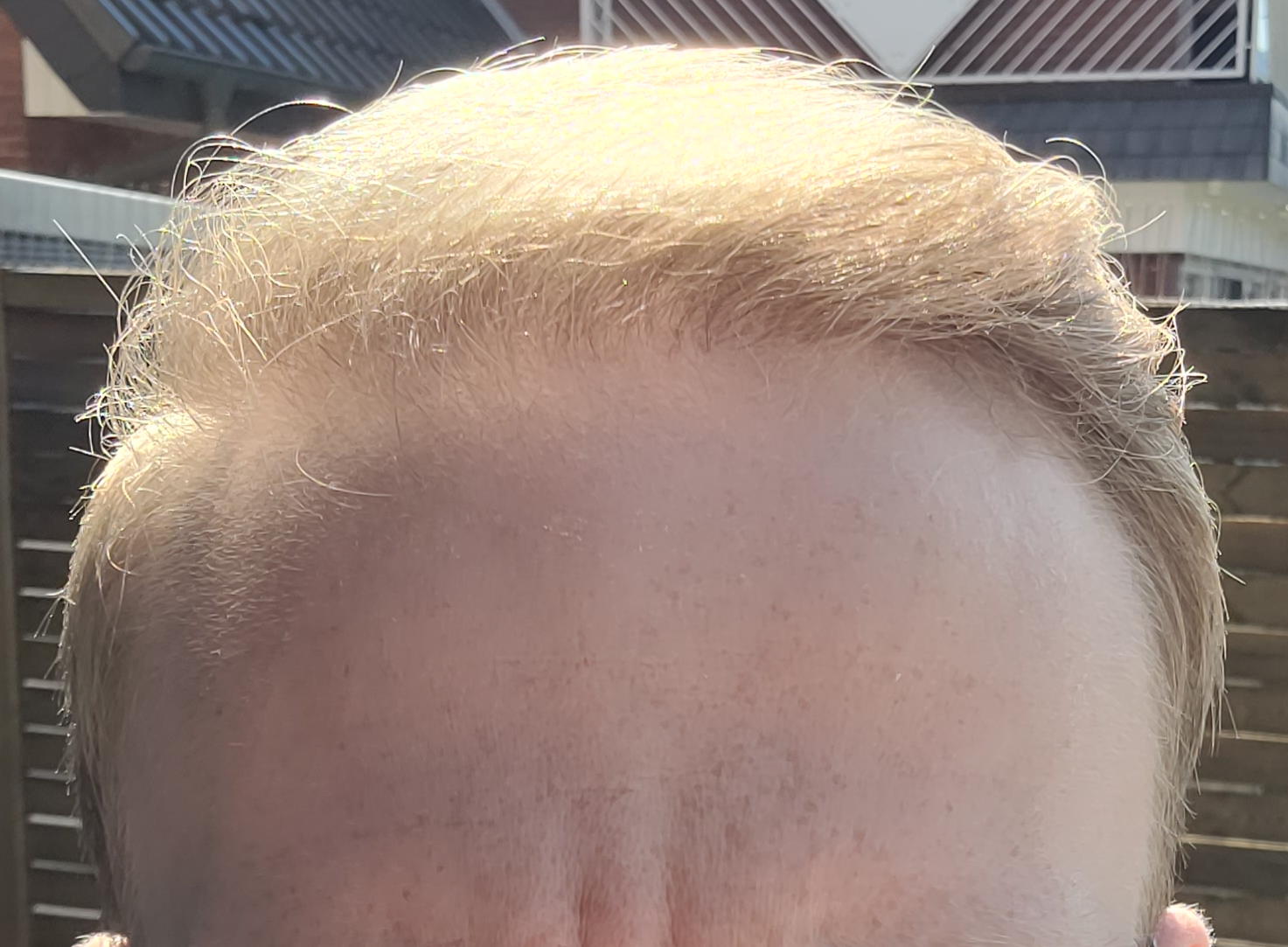 Trotzdem sollte man sich darüber im Klaren sein, dass es sich bei einer HT immer um eine Illusion handelt, es würde z.B. nicht mehr 100 % dicht aussehen, wenn ich die Haare mit viel Gel stylen würde. Der Ansatz ist sehr konservativ. Es hätte mir noch besser gefallen, wenn die Haarlinie einen Zentimeter tiefer gesetzt und die Schläfendreiecke neu ausgebildet worden wären. Ich habe mich aber dagegen entschieden um langfristig mehr Grafts als Reserve zu behalten. Generell ist es ein schönes Gefühl, dass ich Alltag überhaupt nicht mehr daran denken muss, wie meine Haare liegen. Mir haben auch mehrere Leute gesagt, dass ich jünger und gesünder aussehe.