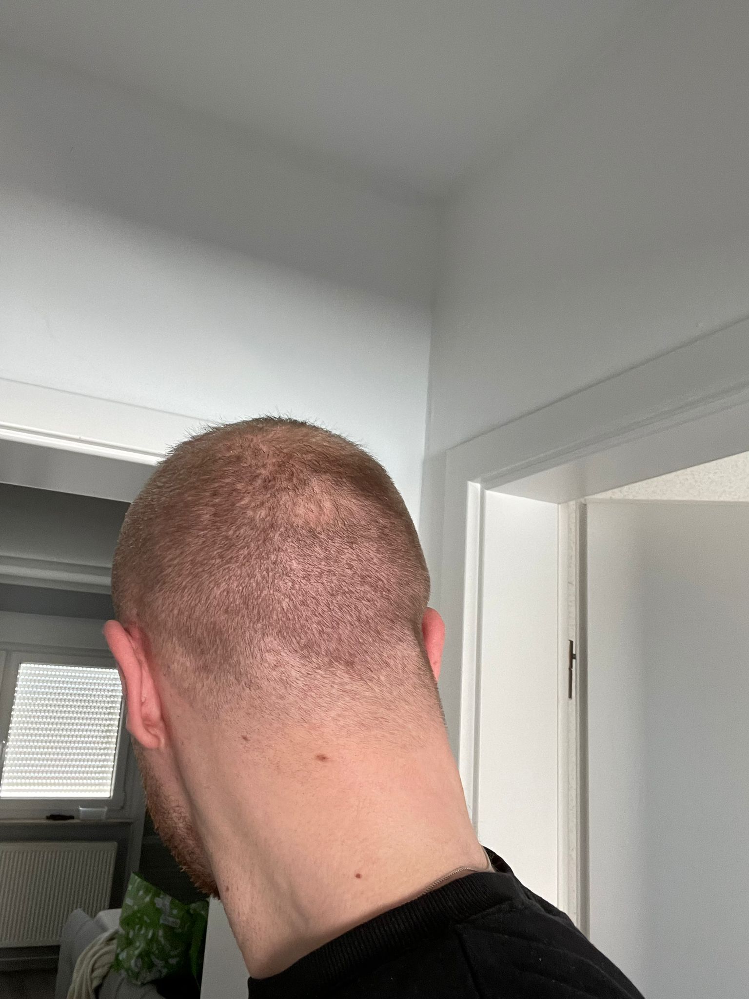 Aber hier ein Update für nach ca. 5 Monaten. Bin sehr zufrieden und war die beste Entscheidung. Hinten/Seiten trage ich 0mm und man sieht keinerlei Narben oder überhaupt die Spuren einer OP.