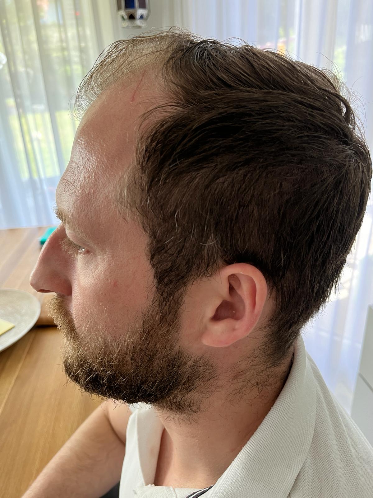 Die Reaktionen aus meiner Bekanntschaft tun mir richtig gut. Ich erhalte immer wieder Komplimente, vor allem von der Haarlinie. Die Haardichte darf noch zunehmen.
