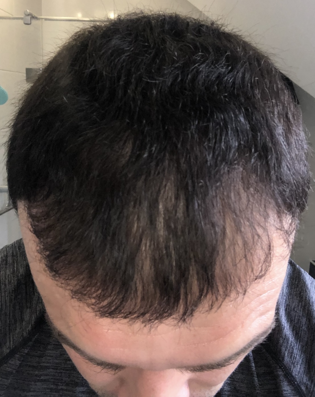 Wenn die weiter hinten nicht so dick wären würde man vermutlich schon mehr sehen da ich jetzt seit dem Ausfall die Haare immer nach vorne gekämmt trage und man es so nicht so extrem sieht.