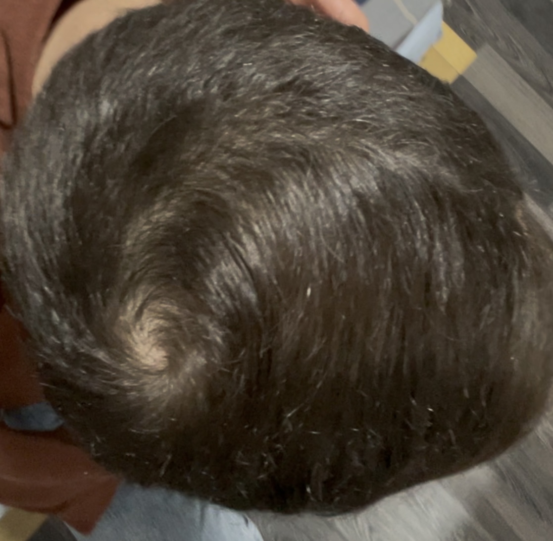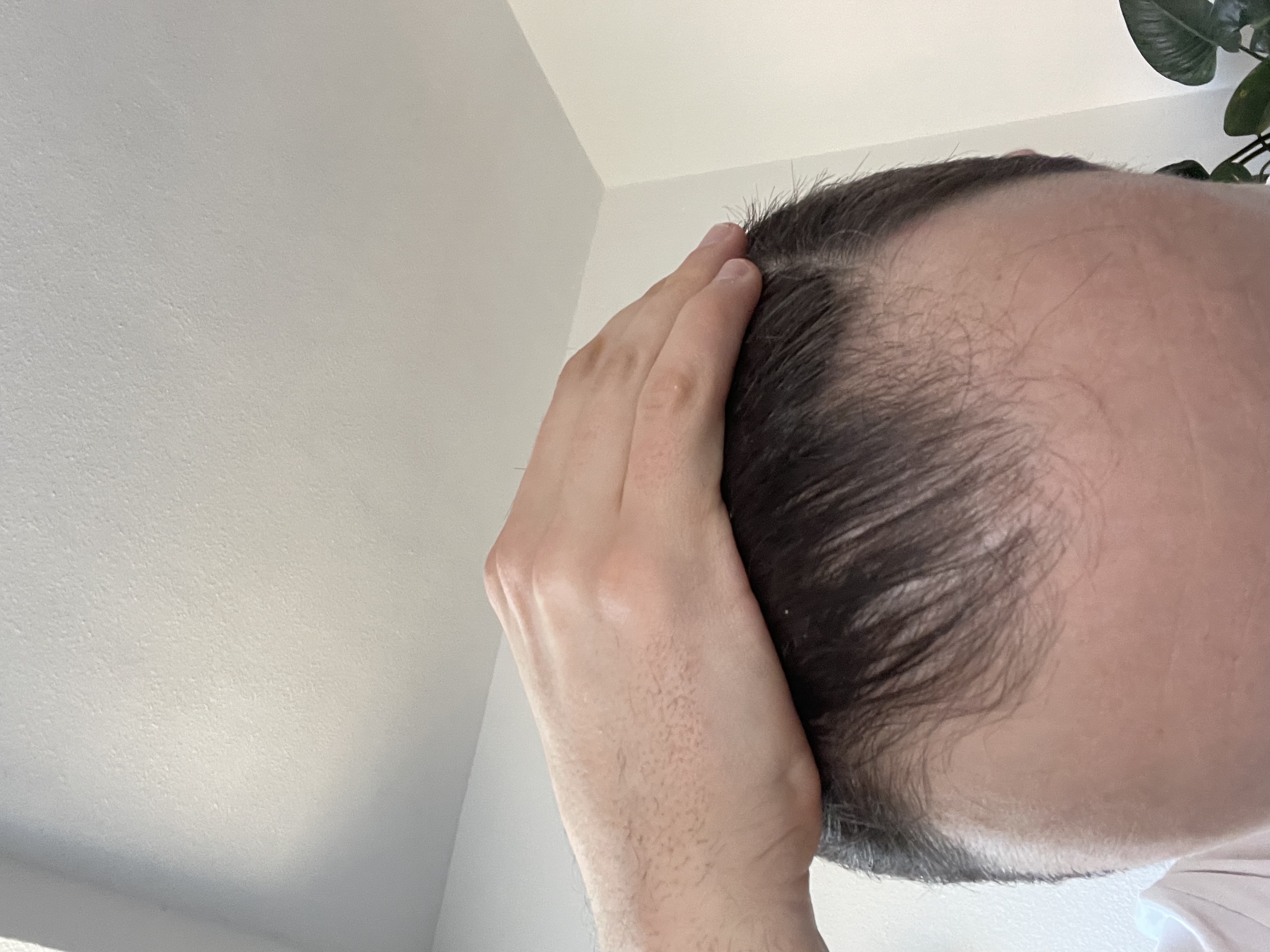 Mein Tonsur ist über die Jahre auch etwas dünner geworden, aber für mich noch in einem akzeptablen Zustand. Auch ohne Produkte sieht der Bereich in trockenen Zustand gut aus finde ich.