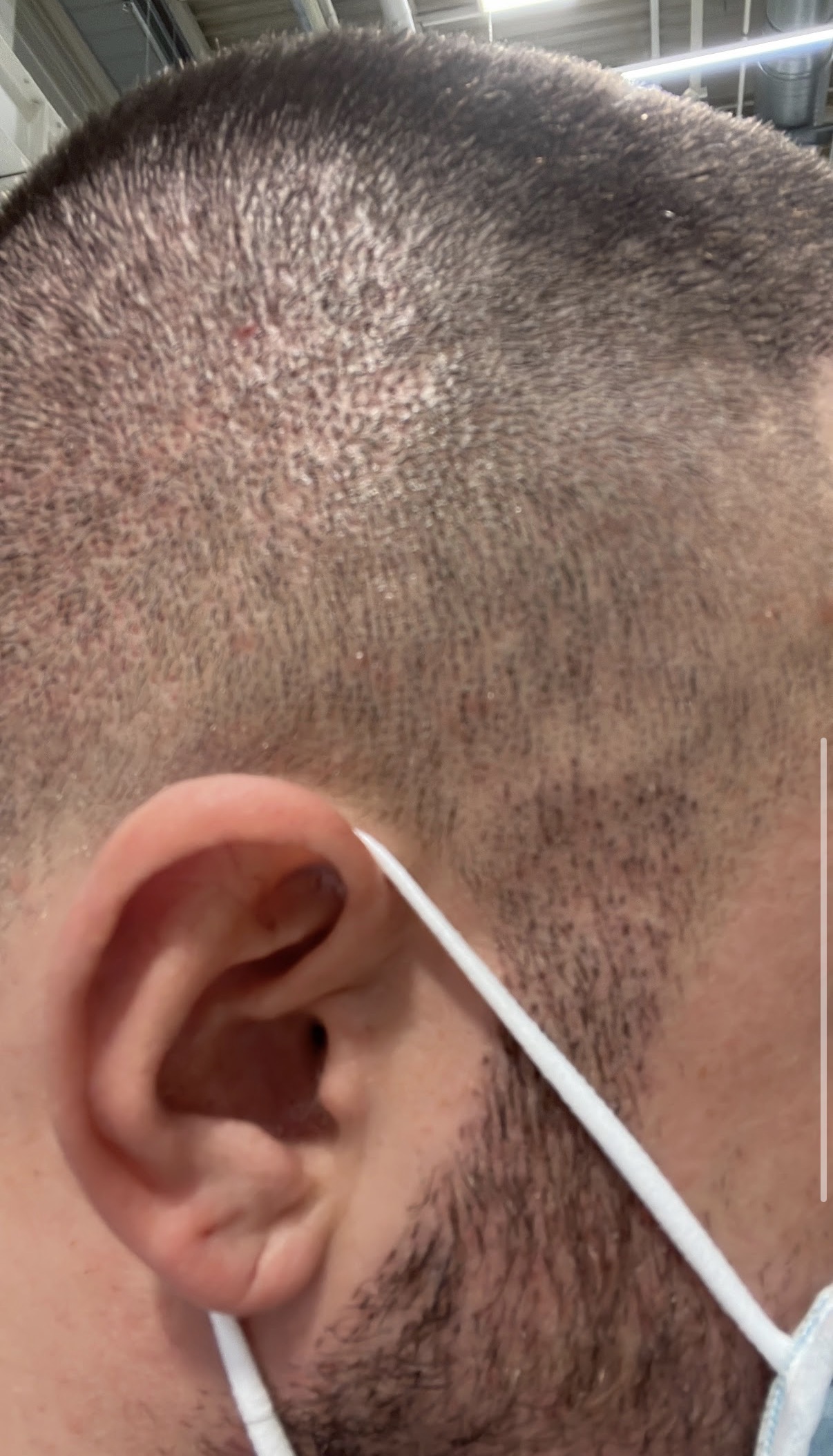 Mein Donor ist sehr ausgedünnt und an einer Stelle wurden sogar Zuviel Grafts entnommen, so das eine Kahle Stelle bleiben wird da ich gerne kurze Haare habe.