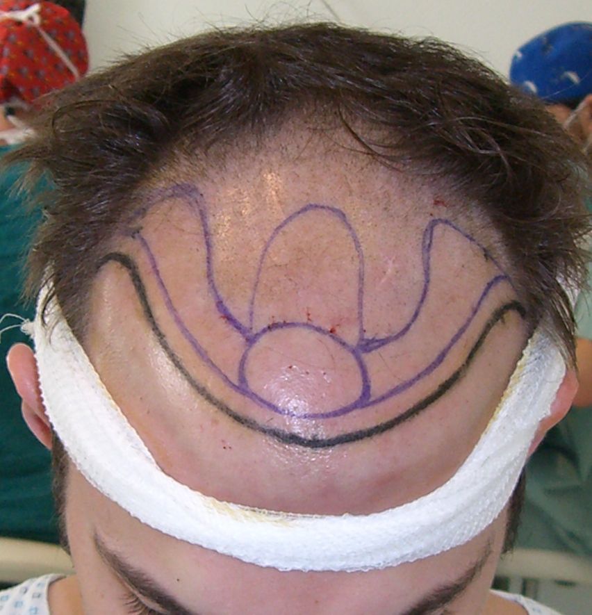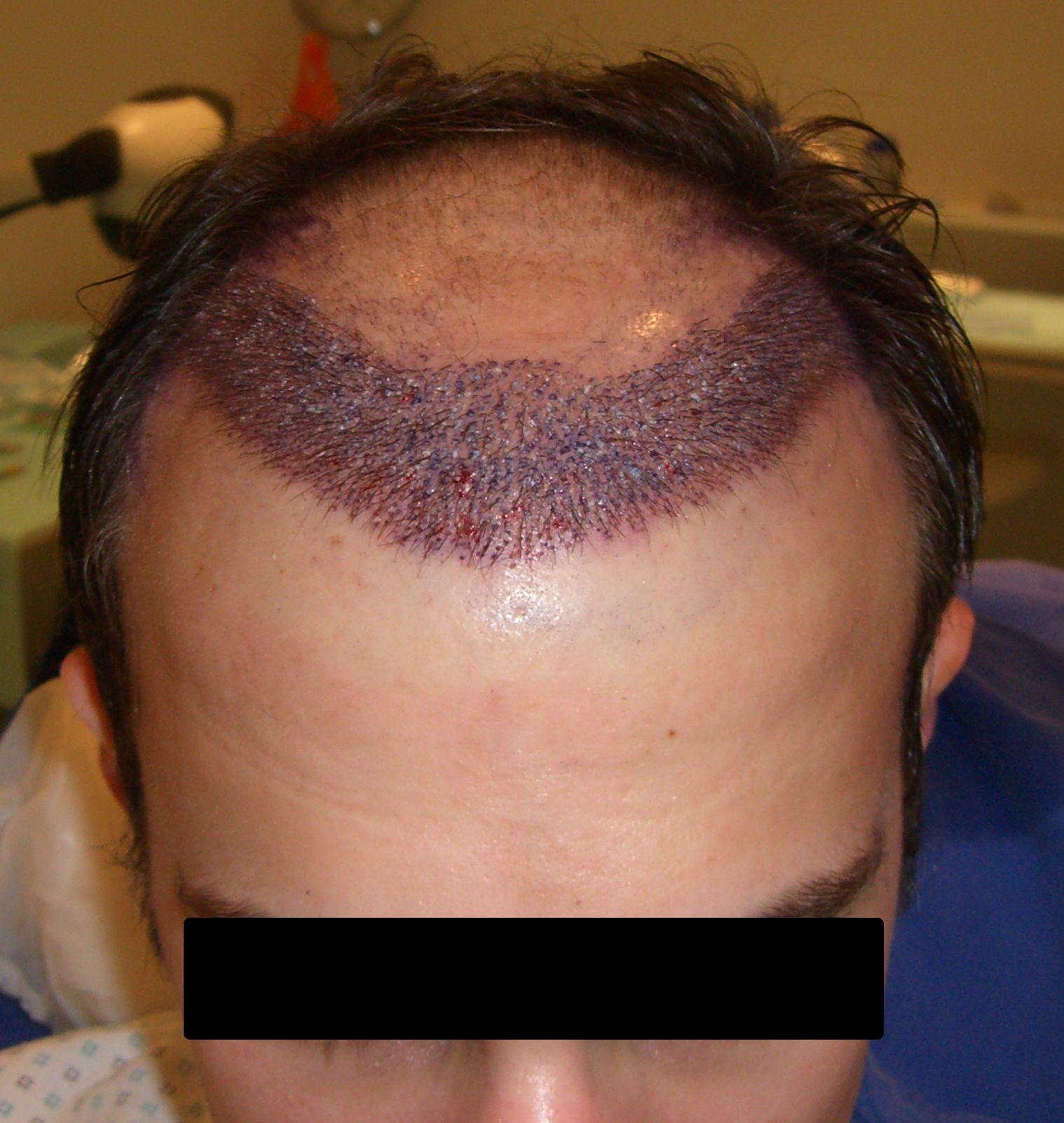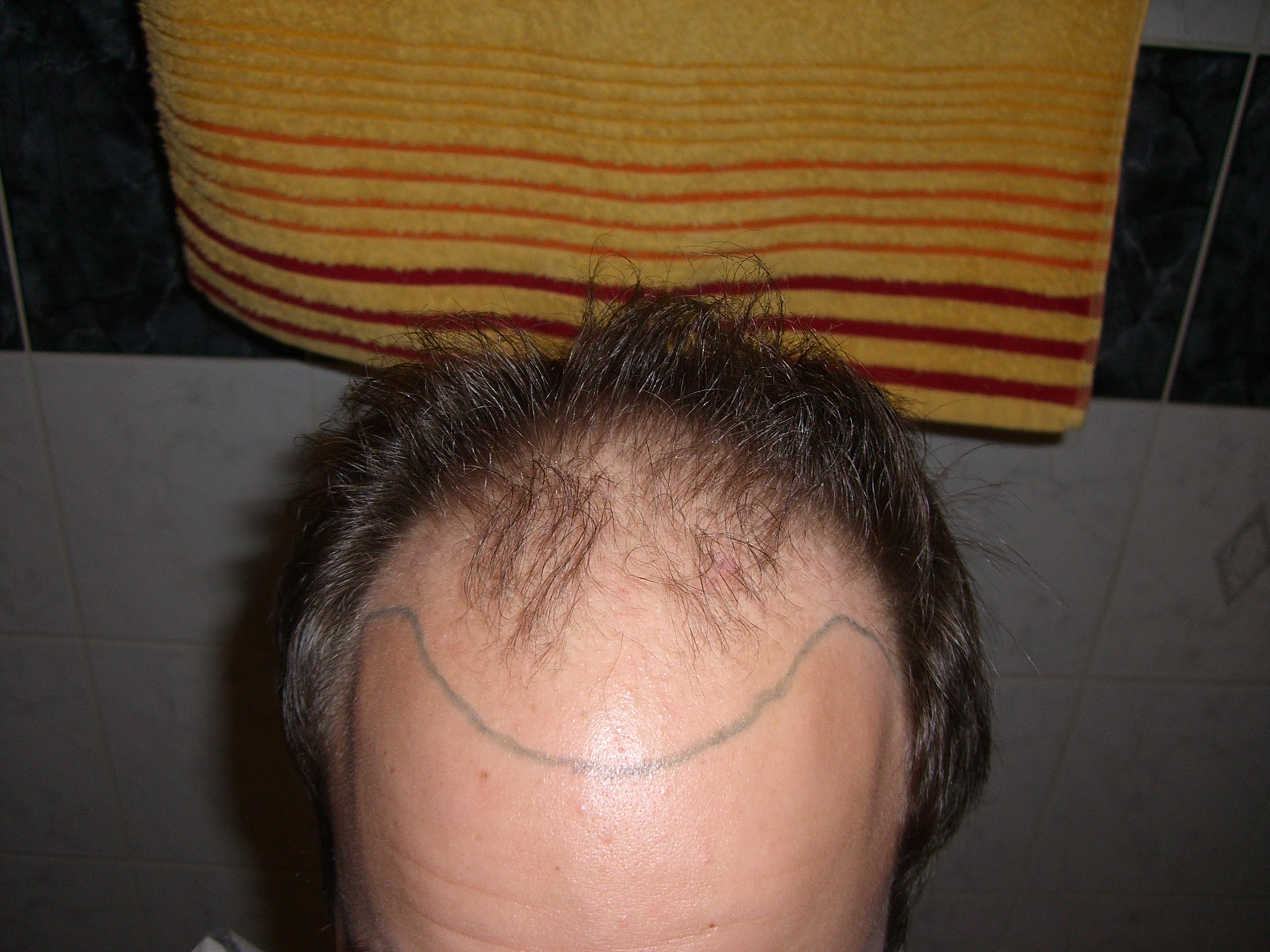 Am ersten Tag wurde die Haarlinie verpflanzt (65er Dichte), am zweiten der Bereich dahinter (vorne 55er Dichte und nach hinten abnehmend).