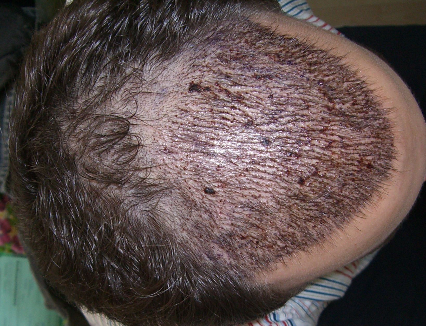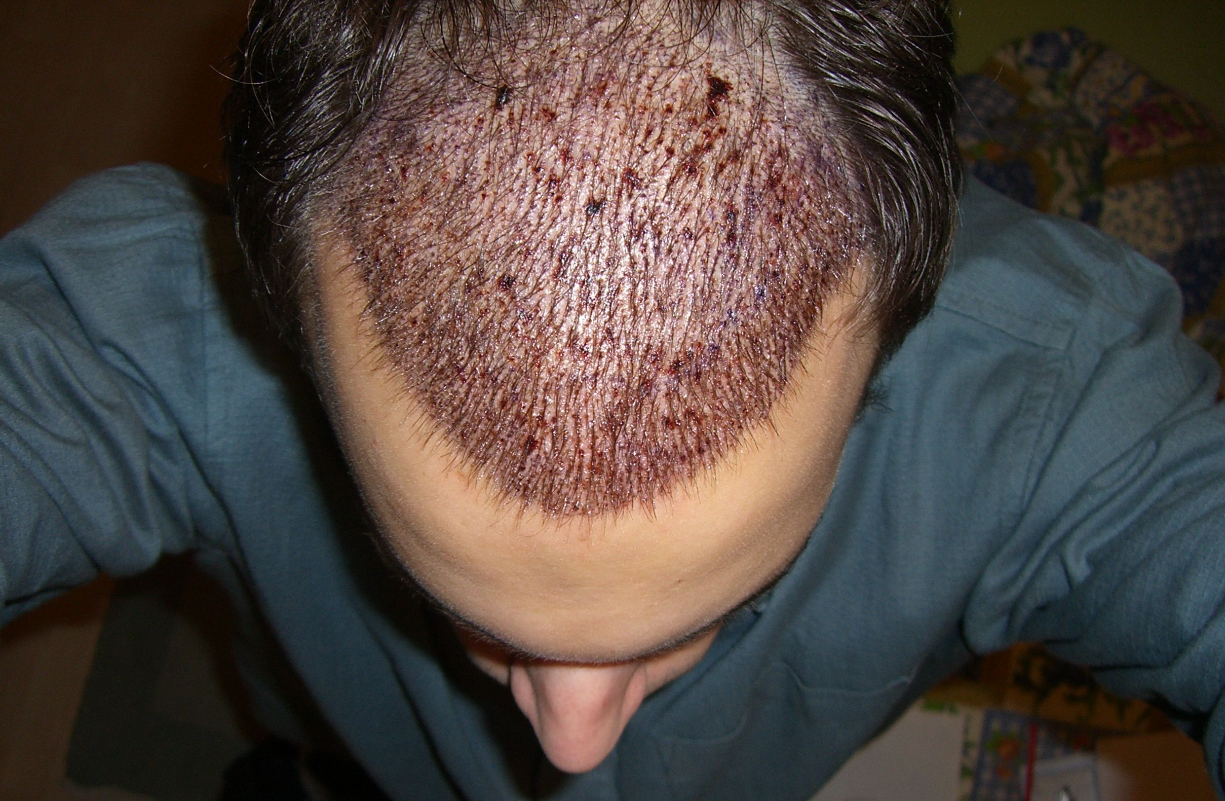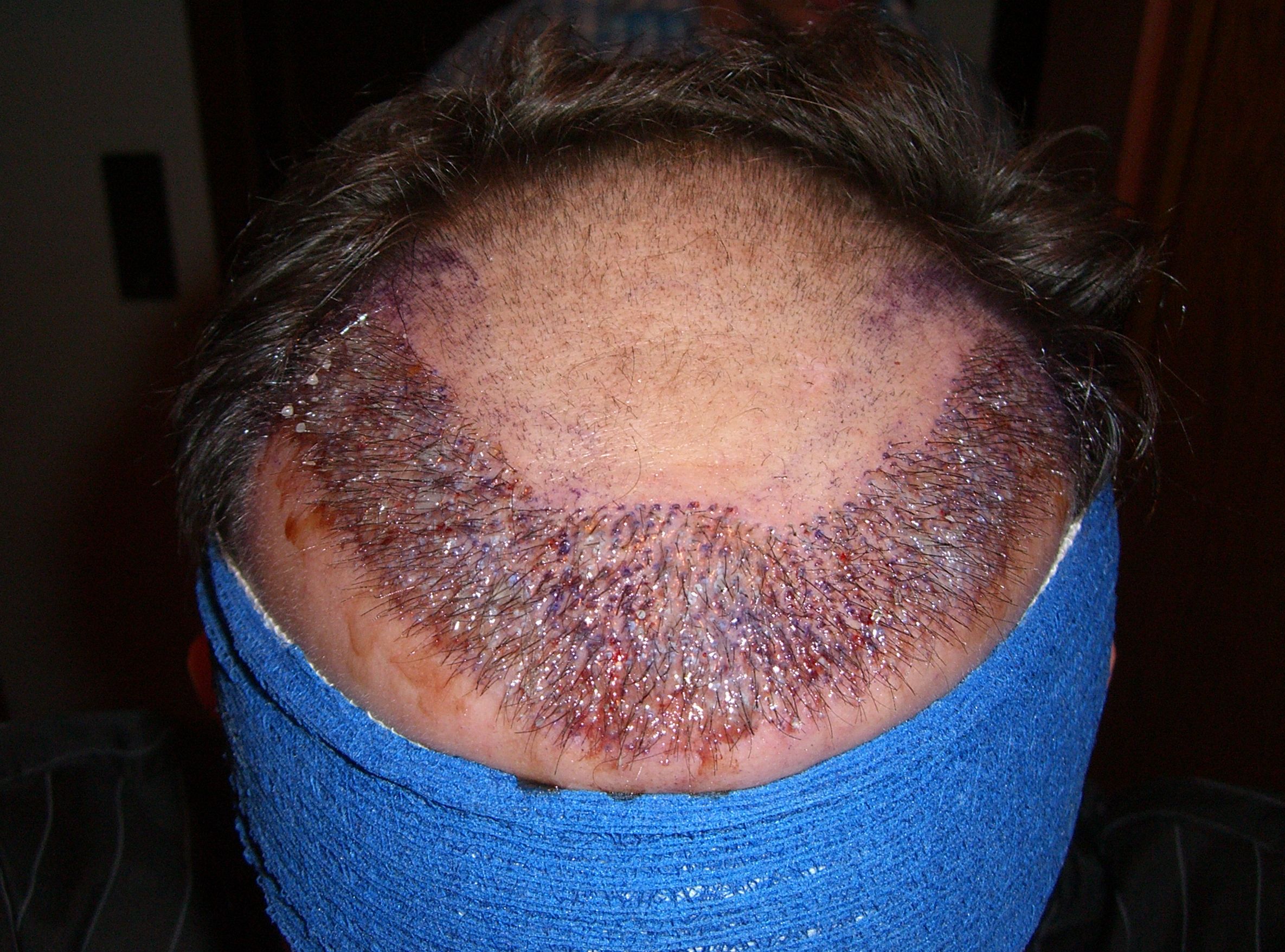 Am ersten Tag wurde die Haarlinie verpflanzt (65er Dichte), am zweiten der Bereich dahinter (vorne 55er Dichte und nach hinten abnehmend).