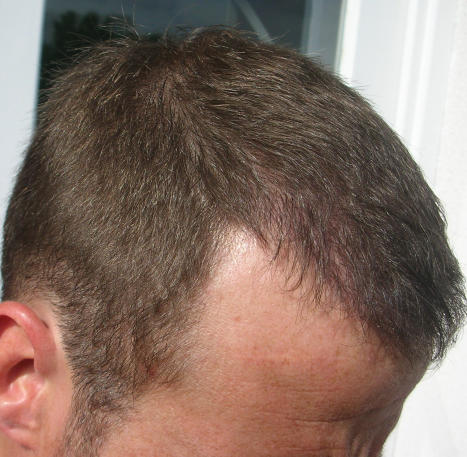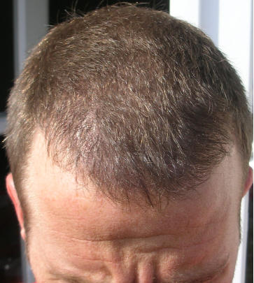 Hier ist sehr gut zu erkennen, was ich mit dünnen, feinen Haaren bzw. einer nicht allzu großen optischen Dichte am gesamten Oberkopf meine.