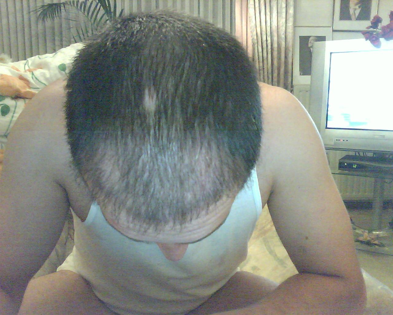 das sind die fotos kurz nach der OP, wo die grefts entnommen wurden. die narbe ist von der ersten OP in düsseldorf