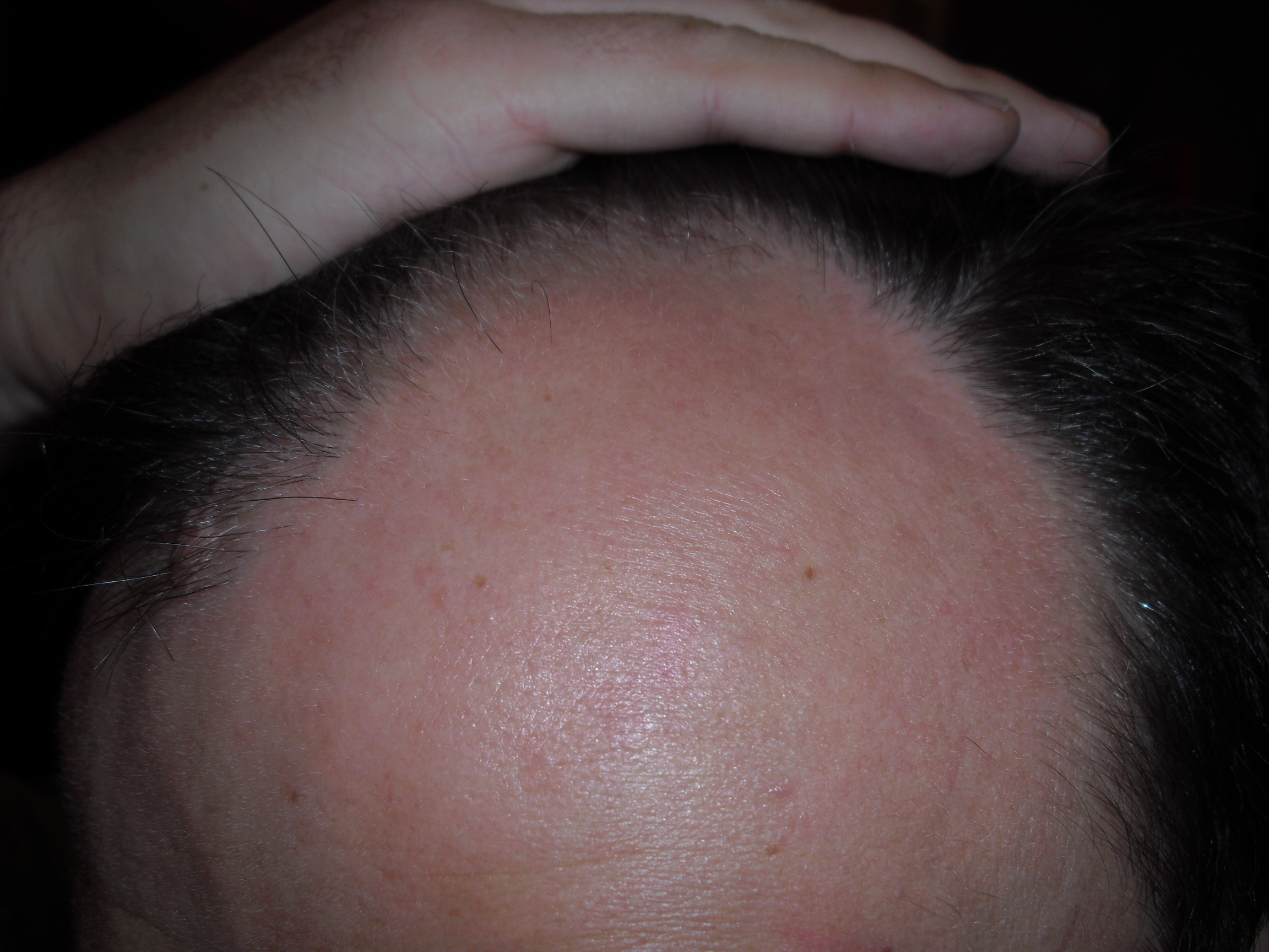 Das ganze ging dann auch ziemlich schnell bis ich nur noch in der Mitte Haare hatte. Das ganze blieb dann relativ stabil, bis dann im Alter von 23 der Steg in der Mitte auch langsam licht wurde.