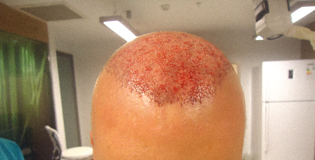 Nach einer örtlichen Betäubung entnahm man mir vom Hinterkopf einzelnd die Haare die man mir später oben wieder einpflanzen würde . Man erklärte mir jeden Schritt so das ich immer genau wusste was gerade passierte. Nach der Entnahme , die ca 3 Stunden dauerte gab es eine kleine Pause wo ich ein leckeres Mittagessen bekam.