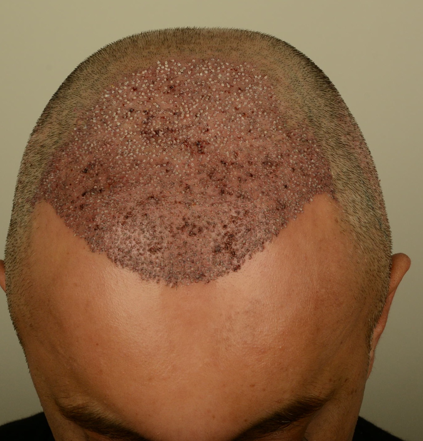 Ich habe diese kleinen Lücken auch schon gesehen, ich hoffe, dass dort Haare noch anwachsen. In den ersten 12 Tagen bedecken die Krusten die gesamte Kopfhaut, so dass man nicht sehen kann, ob Lücken vorhanden sind oder nicht.