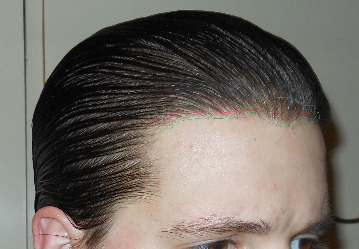 Also im Endeffekt habe ich jetzt in den Ecken vllt. noch je 20 Grafts die transplantiert sind..wenn überhaupt. Das meiste (schätze so 350, weil ich an der Mitte auch einiges epiliert habe) ist im mittleren Bereich des Ansatzes.