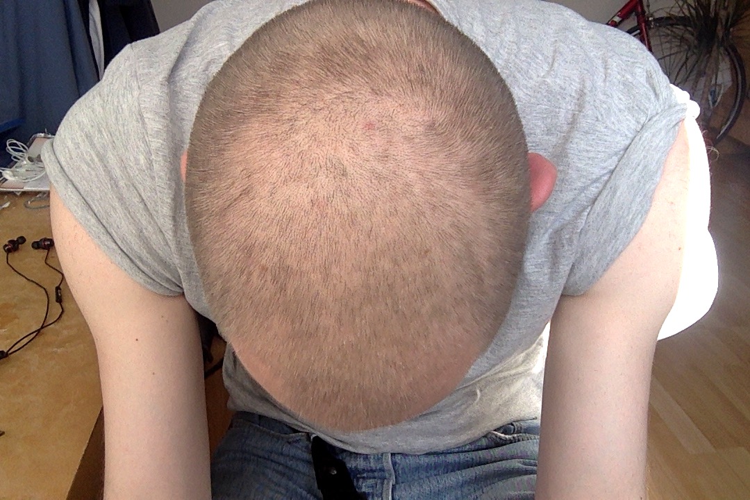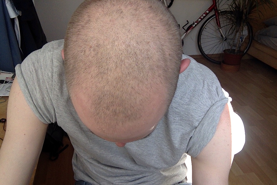 Und hier aktuelle Fotos. Rasiere alle 1-2 Tage auf 0.5mm runter. Es hat mir ungemein geholfen, die Pigmentierung zu machen. Empfinde das als sinnvolle Lösung für die 'transition-phase', um sich daran zu gewöhnen, keine Haare mehr zu haben / den Kopf zu rasieren. Glaube, für NW5-6 Fälle wie mich ist es am mental Gesündesten, wenn man akzeptiert, dass die Zeit längerer Haare vorbei ist - es sei denn, man ist cool damit, lichtes Haar zu haben.