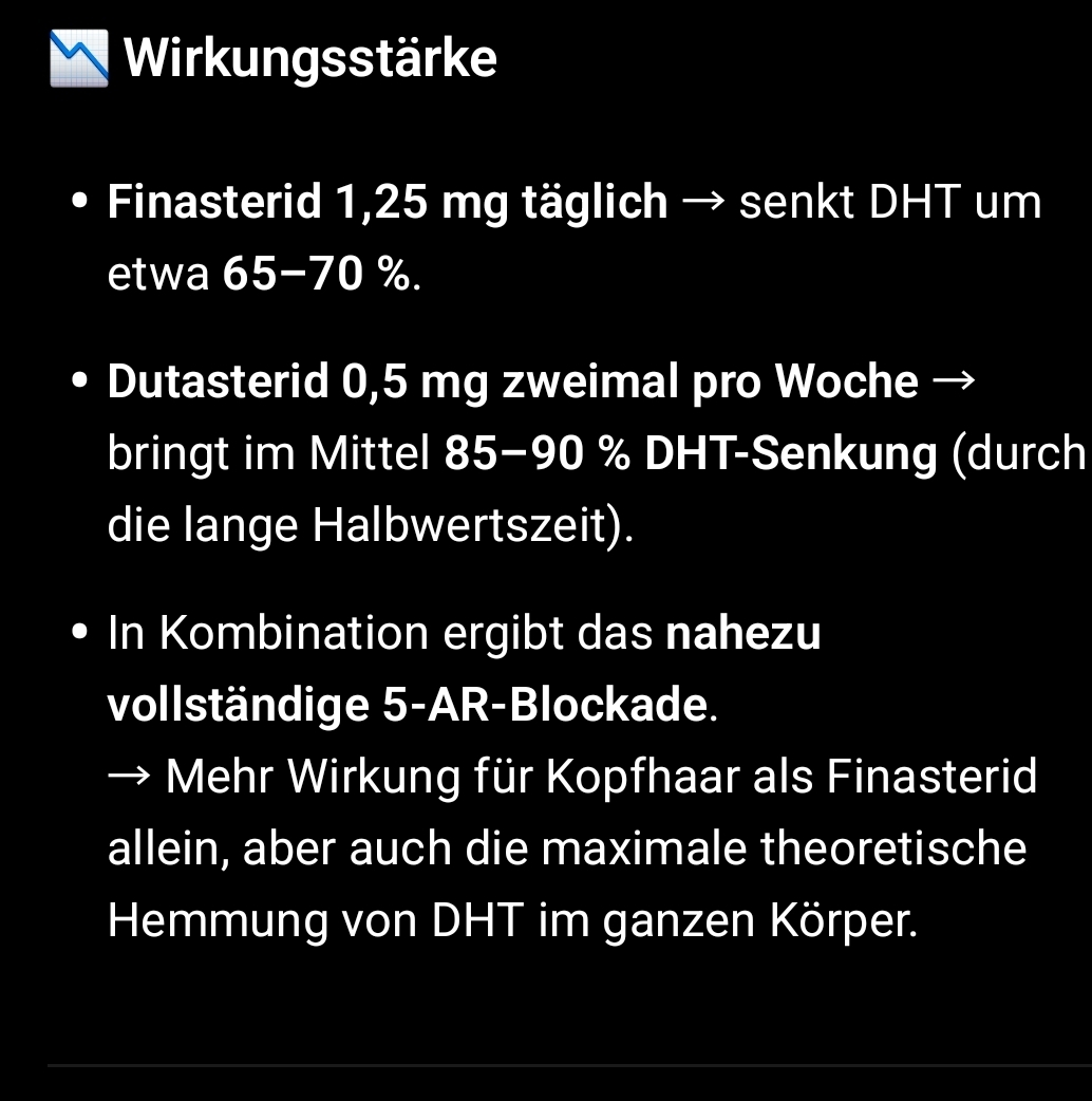 Matt200 schrieb am Do., 09 Oktober 2025 16:21Matt200 schrieb am Sa., 04 Oktober 2025 13:48Reicht theoretisch Dutasterid low Dose aus, wenn Finasterid nachlässt?