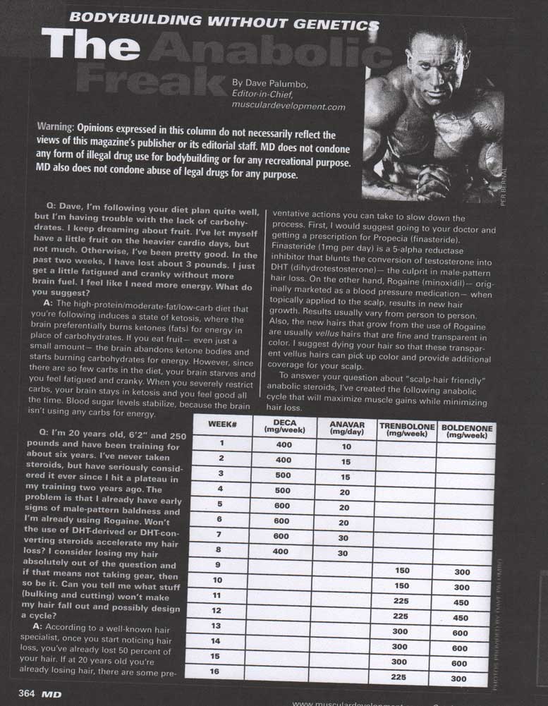 Wenn's interessiert, kann ich einen vom "Erfinder" dezidiert als haarschonend bezeichneten Cycle posten. Ist aber eher nix für Newbies. Grundsätzlich ist z.B. Nandrolon ("Deca") haarschonend. Es kann nicht zu DHT konvertieren. Aber google vorher mal nach "Deca Dick" ...