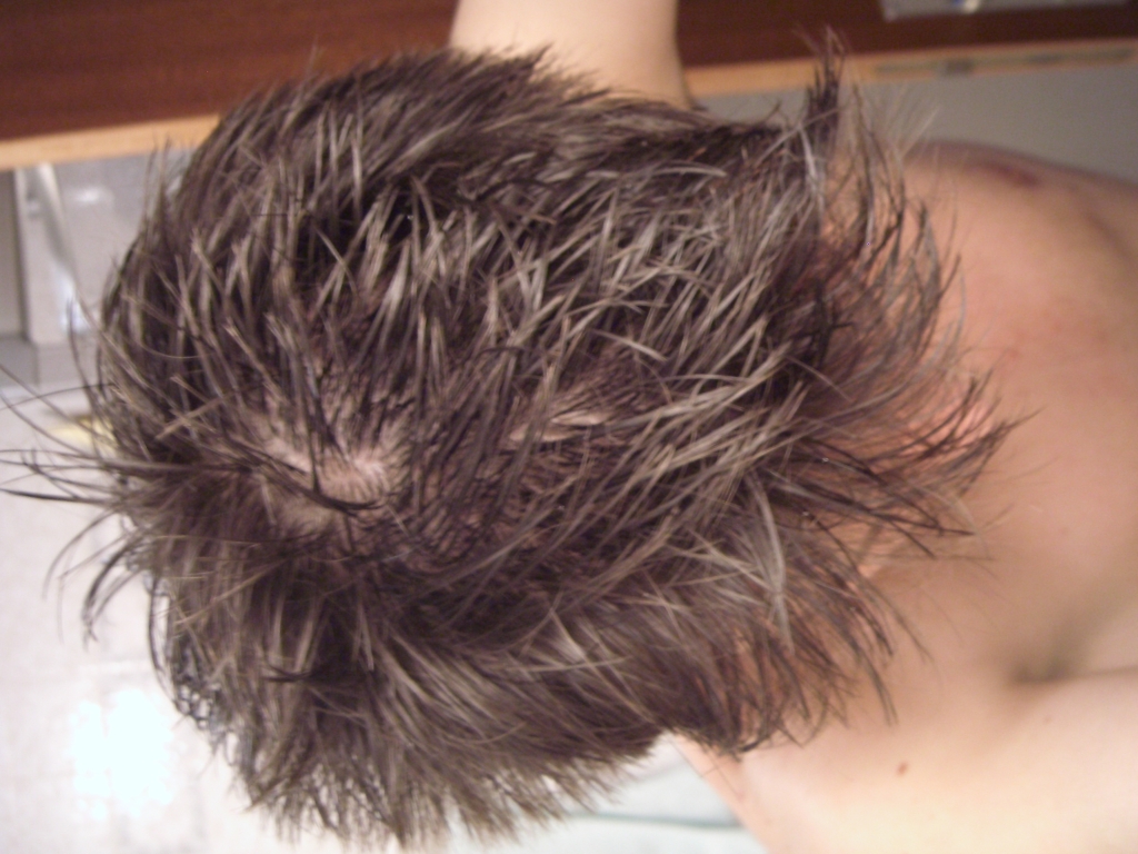Ich also zum anderen Hautarzt Haarprobe machen -> Ergebnis : Schwere Haarwurzelentzündung.