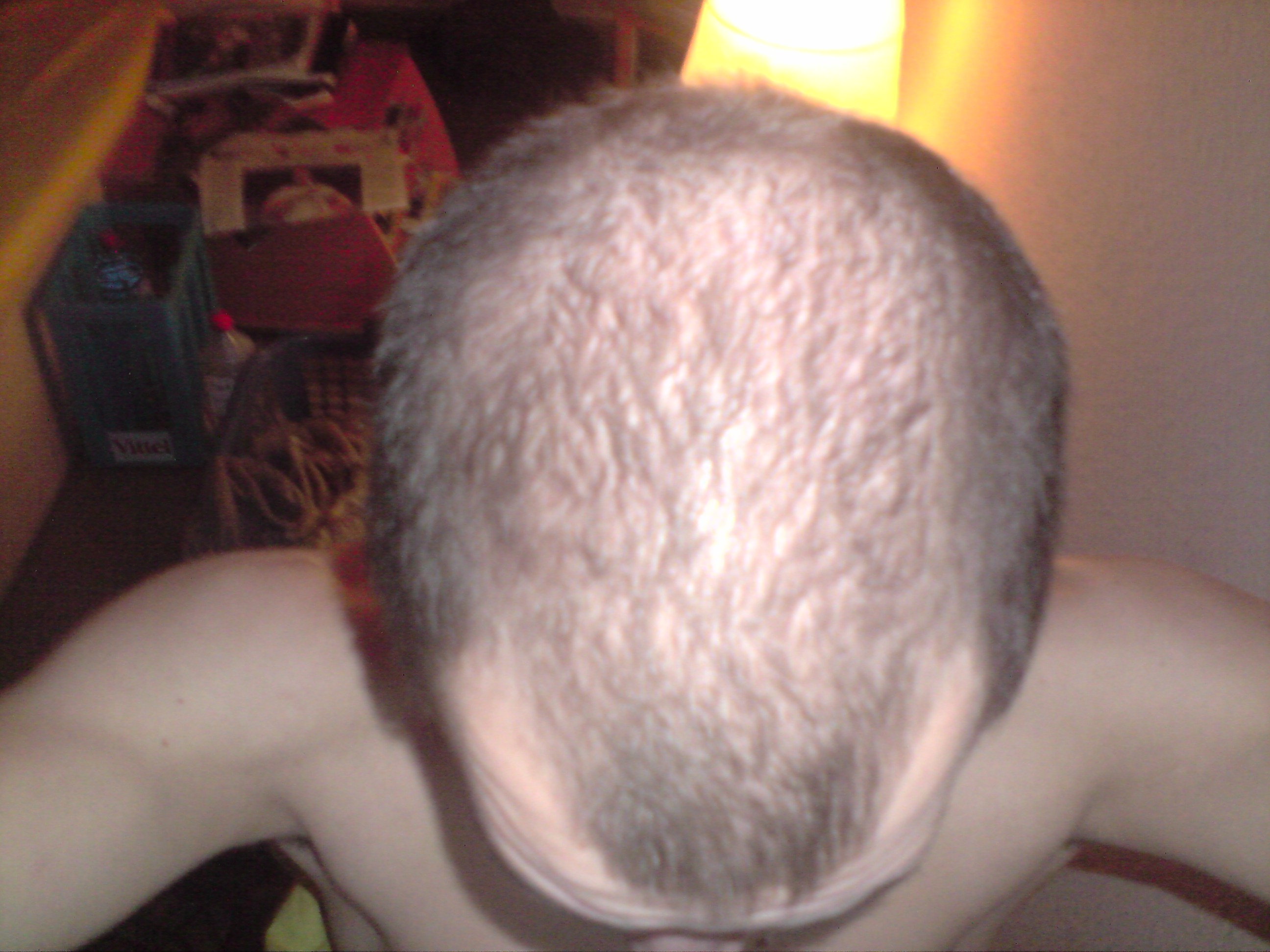 Habe dann vor einem Jahr mit Regaine angefangen und konnte so zumindest den Haarverlust etwas stabilisieren (hatte das Gefühl immer neue Haarstoppeln zu spüren,vll wars aber auch Einbildung).