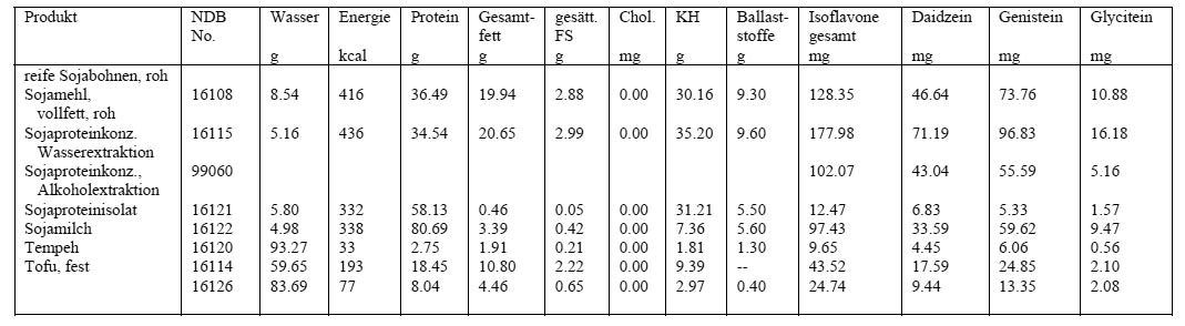 Danke für die Wertigkeitstabelle. Darin kann man schön die Anzahl der Isoflavone ablesen.