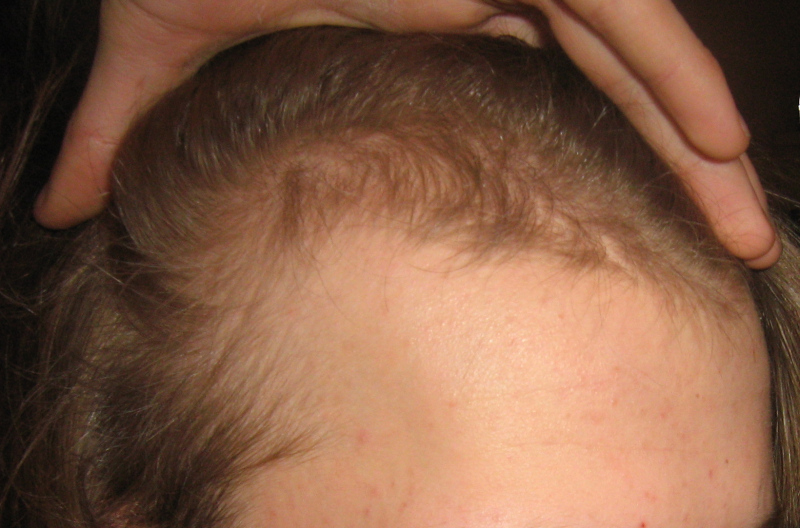 Hier noch ein Foto, auf dem die kleinen neuen Haare ein bisschen besser zu erkennen sind: