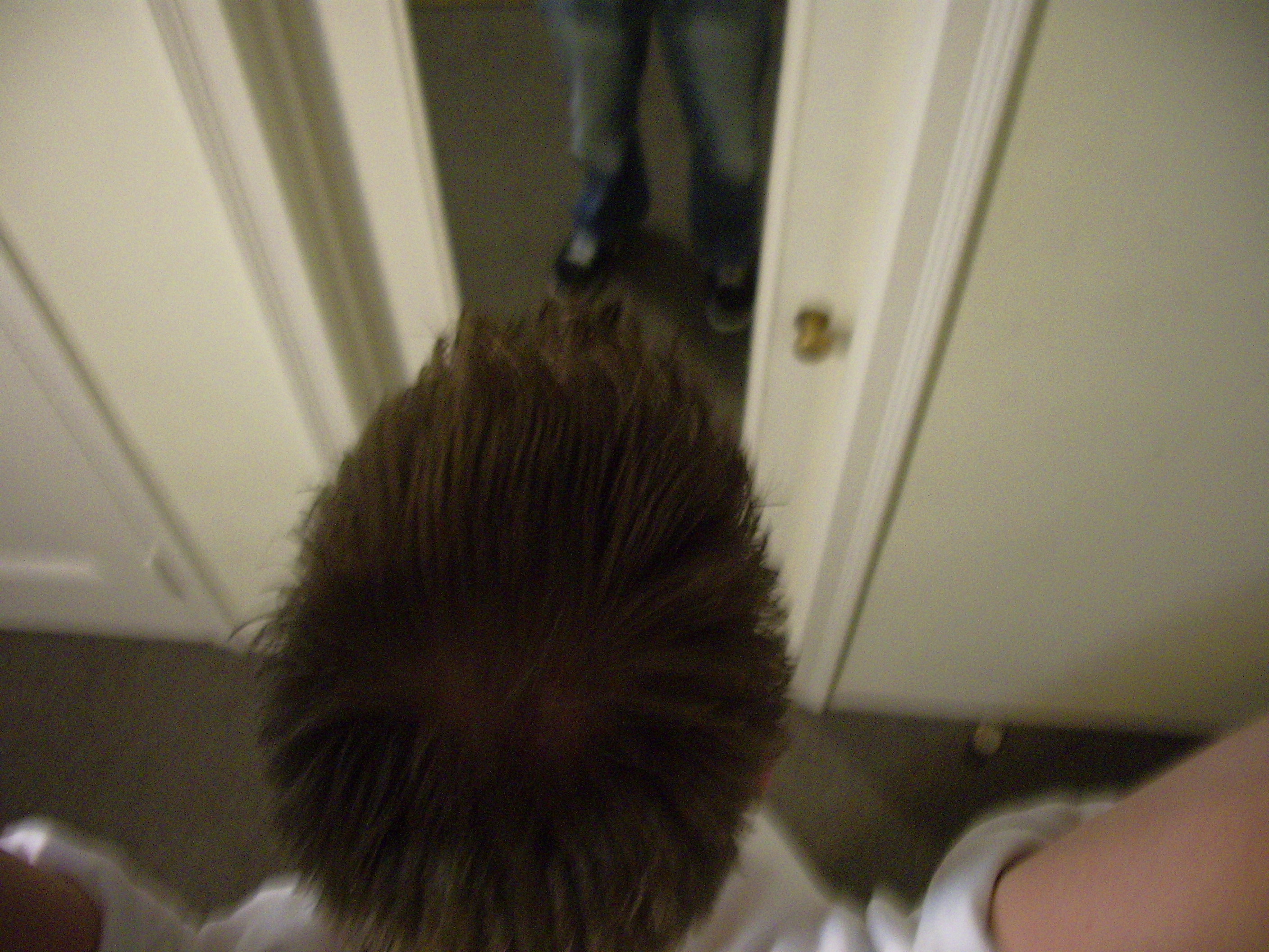 Habe die Bilder gemacht, von oben geht es schlecht besser, habe mit und ohne Blitz von oben fotografiert und eben auch die Haare mit einem Kamm nassgezogen!
