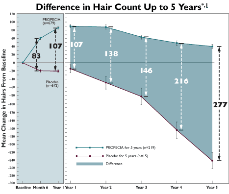nee, das würde heißen, dass es niemals schlechter wird als zu Beginn deiner Behandlung. Ohne Fin wärst du ja nach 5 Jahren bei ~ -240 Haaren.