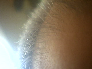 Foxi, welcher Teil deines Kopfes ist auf dem Photo zu sehen? Für mich sieht das mehr nach einer ausgedünnten Frontlinie als nach den seitlichen Haaren aus?! Sag mir wenn ich mich irre...