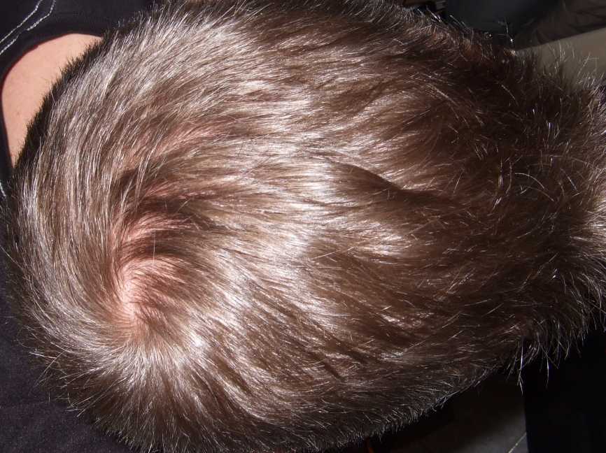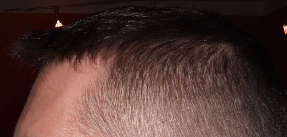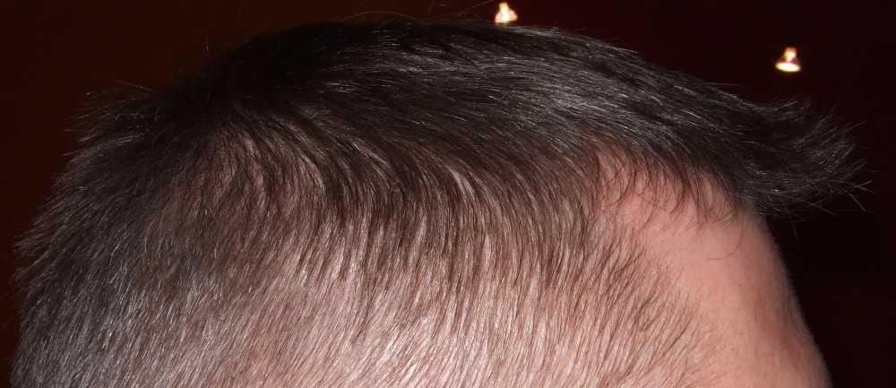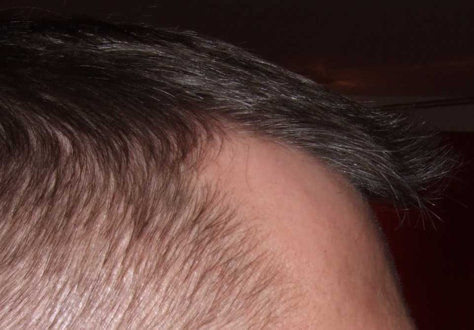 Alter: 31, leichte Lichtung des Tonsurbereichs erstmals bemerkt 05/2006. Seither nur geringe Verschlechterung, so gut wie keine Geheimratsecken. Seit 22.03.2008: durchschnittlich ca. 1mg Finasterid/Tag, seit 22.05.2009 1-2 Mal 1ml Minox täglich.