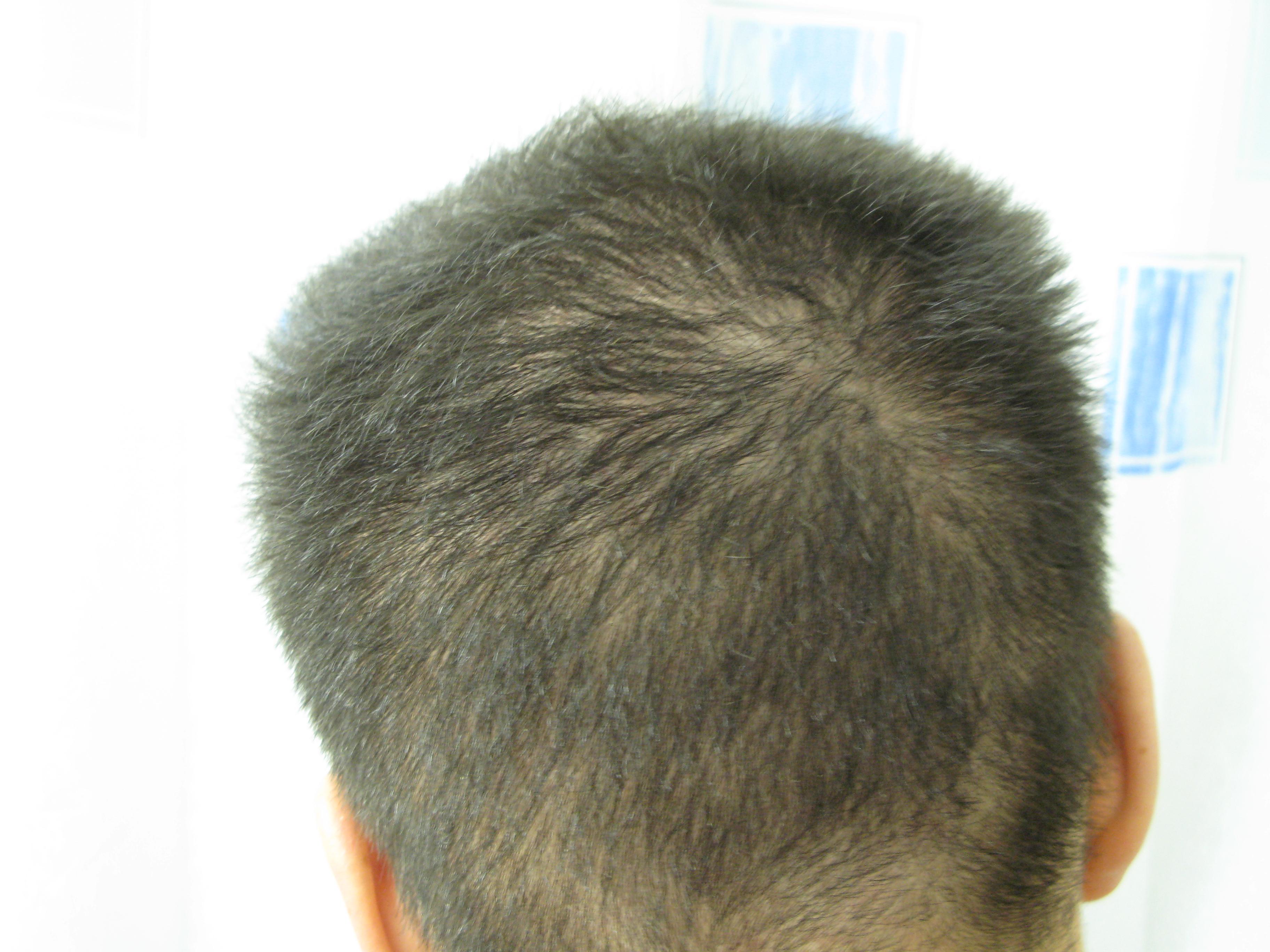 Also dein Haarstatus kommt mir sehr bekannt vor... sieht bei mir nahezu ident aus, außer eben die Haarfarbe - bin eher mittelblond. Aber auch an den Seiten und hinten der eher schüttere Haarwuchs sieht bei mir genauso aus wie auf deinen Fotos.