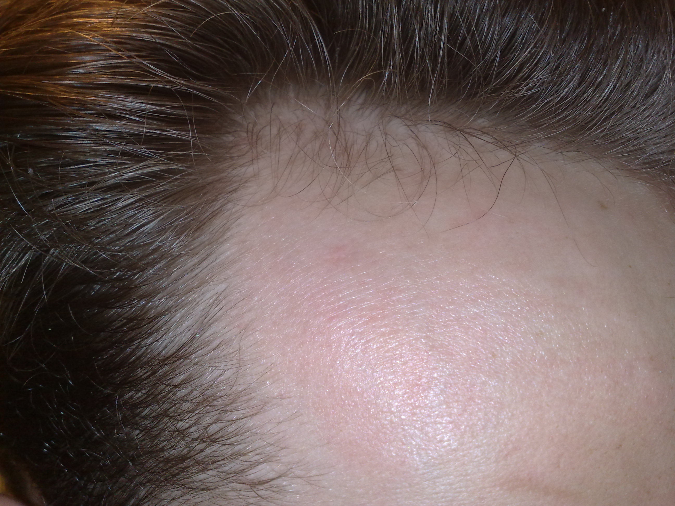 Man sieht vorne deutlich die kurzen, feinen Haare. Das sind die, die dann immer schwächer werden und irgendwann weg bleiben. Ja, ja, ja. Very Happy