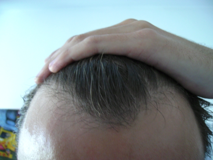 Warum nimmst Du denn kein Propecia ? Oder habe ich da etwas übersehen. Aber damit könntest Du ein Fortschreiten der Tonsur - die sich in Ansätzen bissl abzeichnet - verhindern.