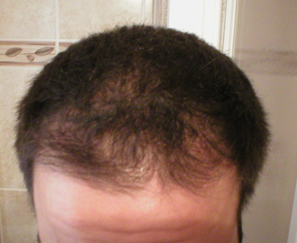 Denn das typische männliche Haarausfall-Muster schaut anders aus. Zuerst GHE, dann Tonsur. Das stimmt! Aber auf den Bildern sieht es mehr so aus, als wie die Haare im gesamten Frontbereich und mehr auf der Kopfmitte ausdünnen statt am Hinterkopf.