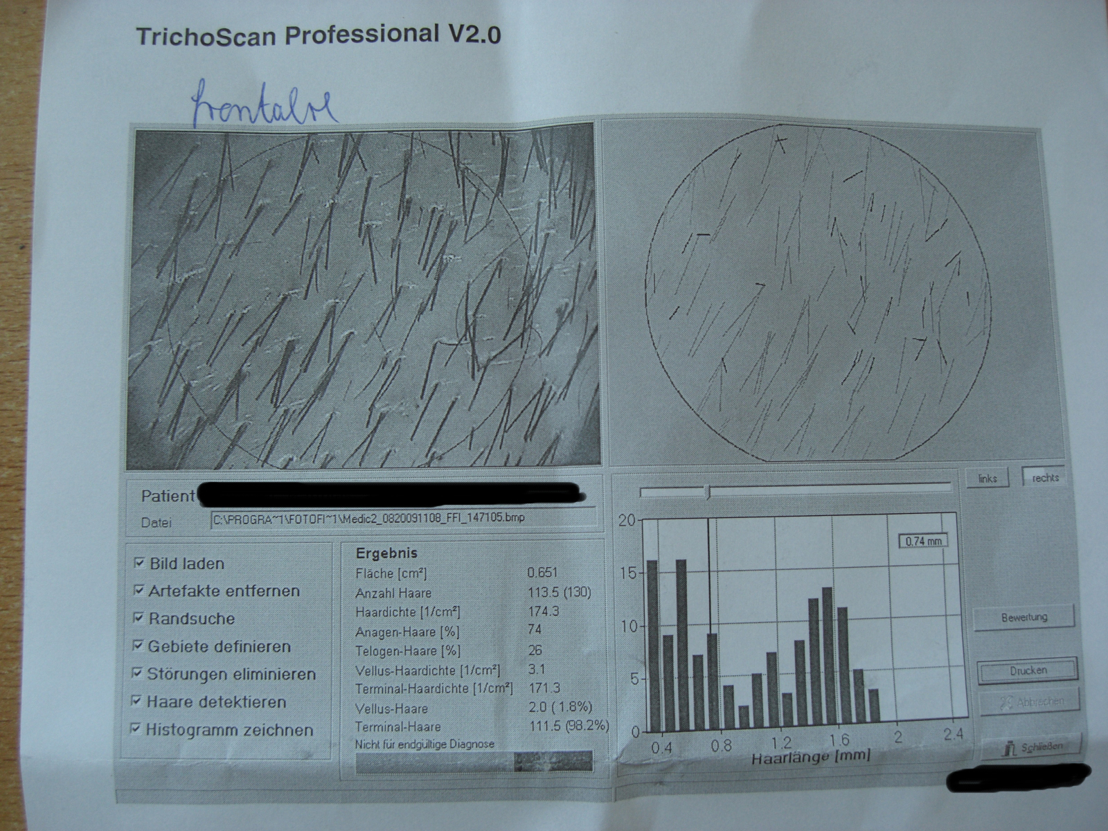Anbei Foto Trichoscan (Vorderkopf)