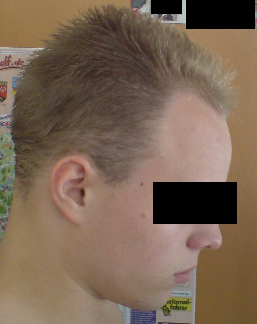 Hallo, heiße Tobias und bin jetzt gerade mal 22 Jahre alt und langsam macht mir mein hoher Haaransatz und das dünner werdende Haar, vorallendingen im GHE Bereich doch stark zu schaffen. Mein Vater hatte auch recht früh eine Glatze bekommen und mein Bruder hat mit mittlerweile 29 Jahren auch schon recht dünnes Haar, aber ich bin fast der Meinung wenn das so weiter geht, habe ich ihn in 1 Jahr eingeholt. Einen recht hohen Haaransatz hab ich eigentlich schon seit meiner frühen Pubertät, aber die Haare waren eigentlich immer recht dick (für blonde Haare), aber so langsam hab ich das Gefühl, dass alles sich immer mehr ausdünnt. Habe mal 3 Fotos angehangen um meinen aktuellen Status zu zeigen. Nun hab ich mich etwas mit den Möglichkeiten beschäftigt die man gegen Haarausfall unternehmen kann, aber irgendwie bin ich trotzdem völlig ahnungslos was ich speziell in meinem Fall am besten tue. Bei Finasterid z.B. meinte mein Hautarzt, dass das wenig im vorderen Kopfbereich bringen würde, was ja aber vor allem in meinem Alter aber doch noch sehr wichtig ist für mich. Wäre Regaine da besser geeignet? Finasterid greift in den Hormonhaushalt ein, sollte ich das ein Leben lang mit meinem Körper machen? Irgendwie habe ich da bedenken. Welche möglichen Nebenwirkungen hat Regaine? Ist eine Dauerbehandlung damit problemlos? Sogar an eine Haartransplantation habe ich schon gedacht, aber würde das ein ordentlicher Arzt bei meinem Alter durchführen? Welche Methode würde sich dann am ehesten eignen um die GHE etwas zu verkleinern und wieder eine schöne geschwungene, vorne runde, Haarlinie herzustellen?