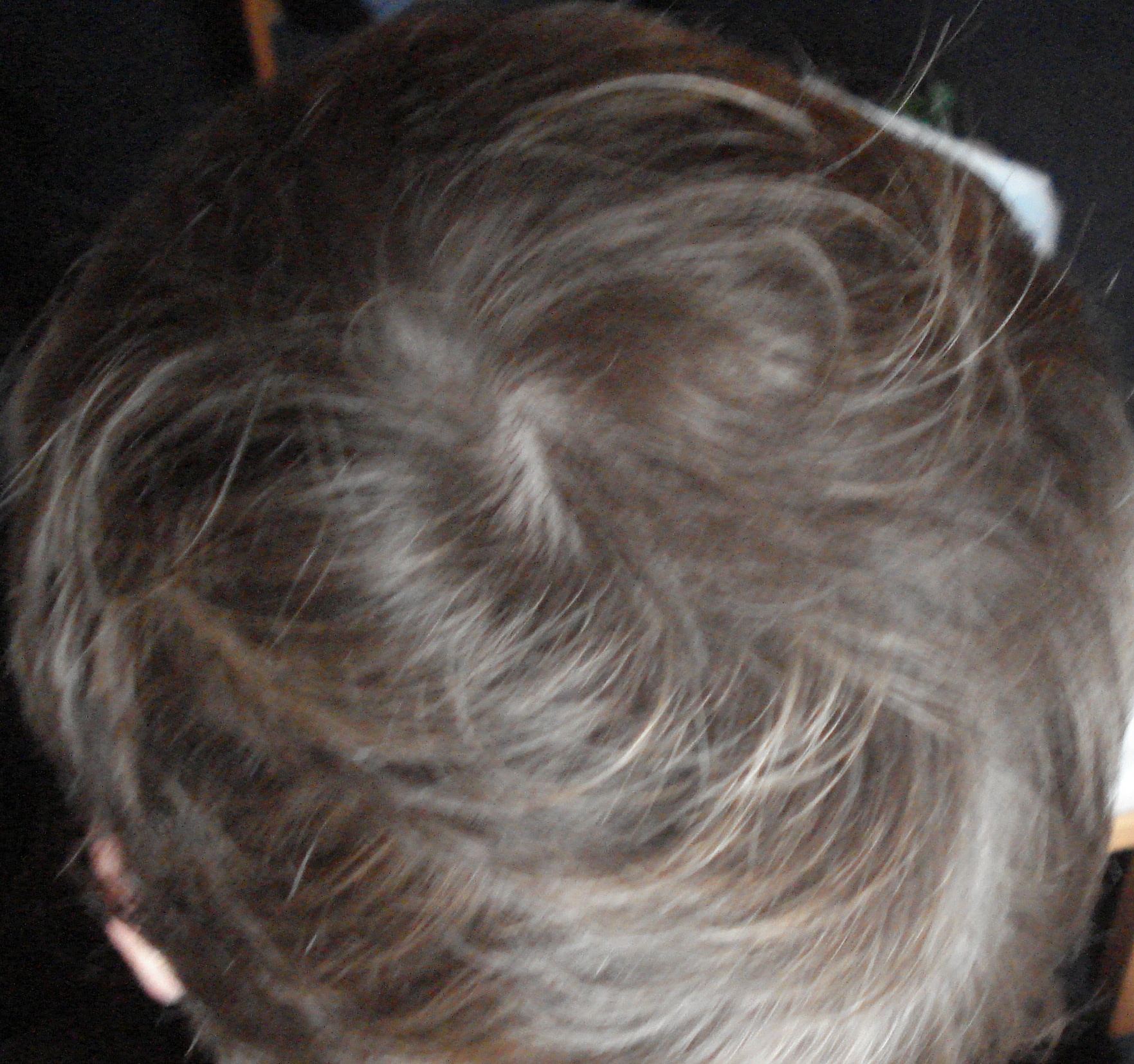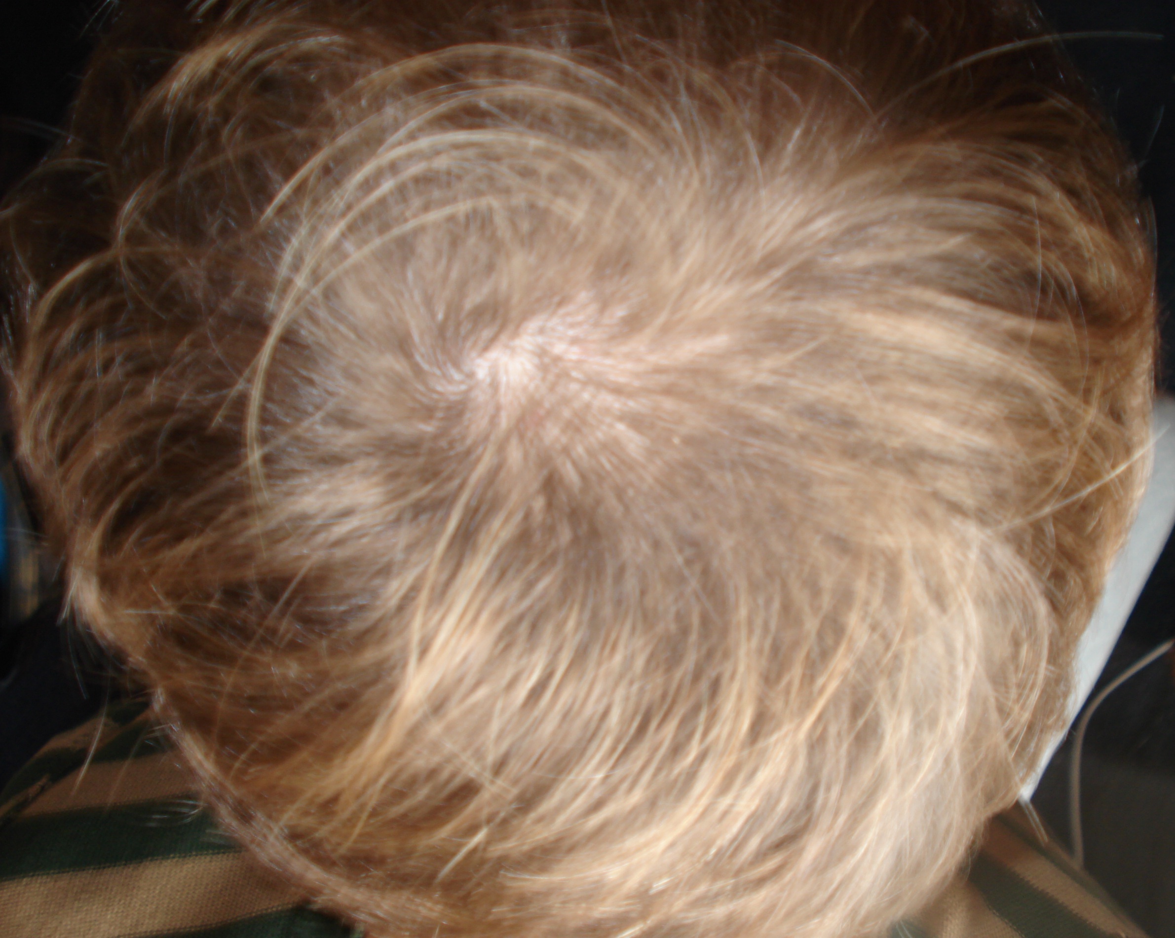 Deine Tonsur ist absolut noch im grünen Bereich. Dass man an einem Wirbel etwas die Kopfhaut sieht ist genauso normal wie dass es bei nassen Haaren schlimmer aussieht.