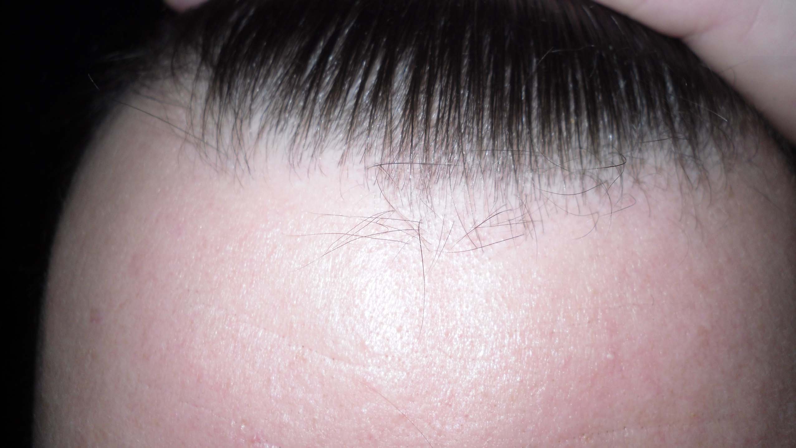 Volles Haar habe ich natürlich nicht nach dieser kurzen Zeit, davon bin ich weit entfernt. Aber es bewegt sich was auf der Birne. Das ist sicher... Erkennbar auch daran, dass es in einer "Ecke" (GHE) mehr ist, als in der anderen. Erkennt man aber nur direkt vorm Spiegel...