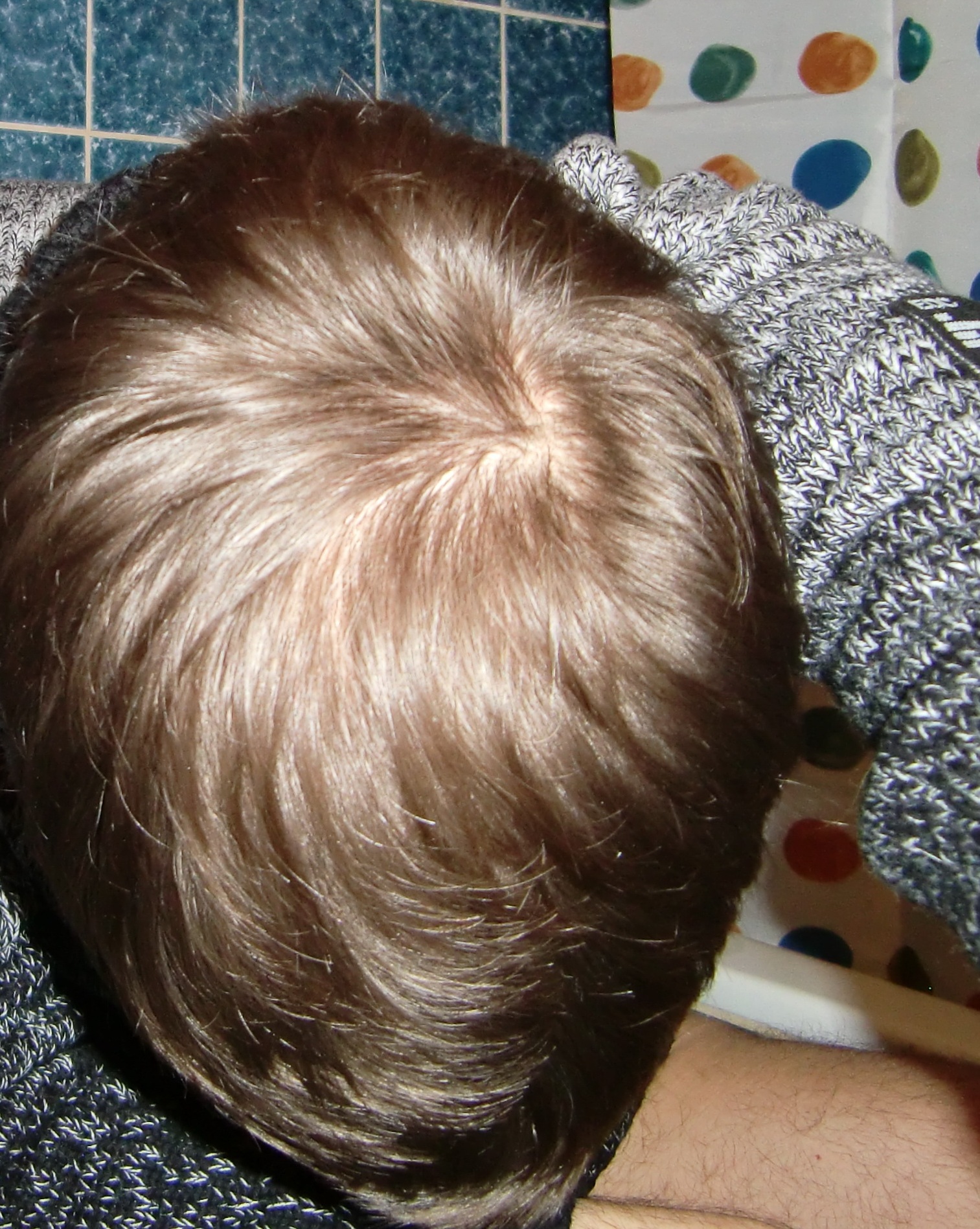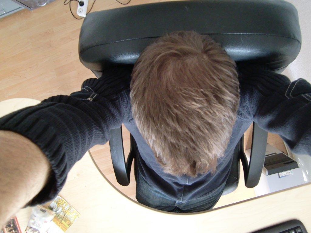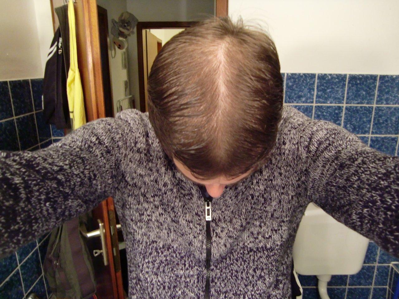 Bisher aufgefallen war mir nur eine lichte Stelle am Hinteren Oberkopf, der Wirbel ist weiterhin gut bewachsen. Nun habe ich die Vermutung das es das Ludwig Schema sein könnte und ich in ein paar Jahren aussehe wie Andy aus Little Britain Smile.