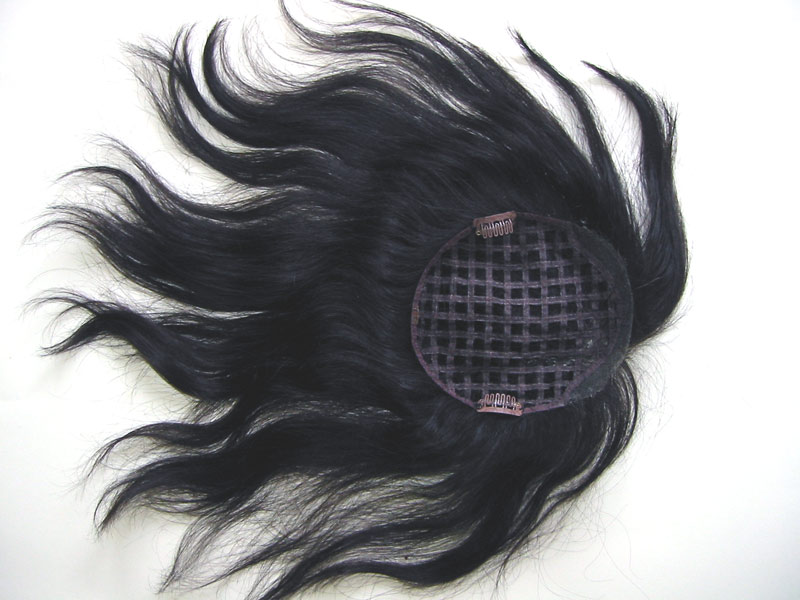 Das Haarteil hat vorne einen Kleberand und wird an den Seiten mit Haarclips am Eigenhaar befestigt. Kennt jemand Hersteller solcher oder ähnlicher Haarteile?