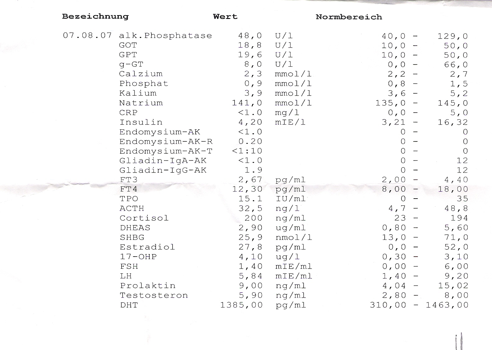 Startseite » Allgemein » Haare und Haarausfall » Laborwerte: Bitte anschauen