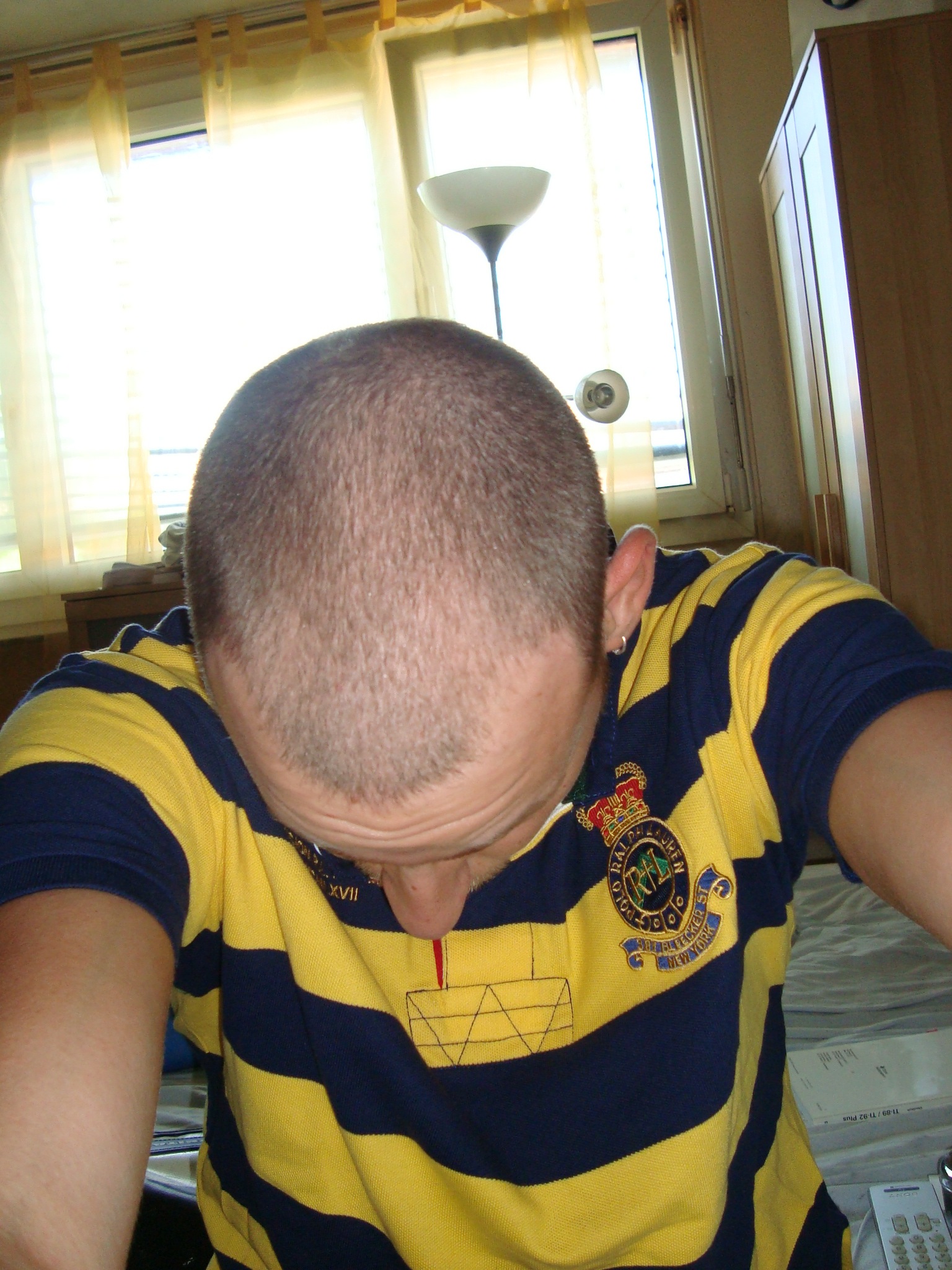 Zuerst dachte ich es wäre halb so schlimm, bis ich meine Haare auf wenige mm geschnitten habe. Da sah ich, dass nicht nur die Ecken lichter wurden sonder auch auf dem Hinterkopf und im Tonsur-Bereich. Je nach Licht sieht es anders aus.