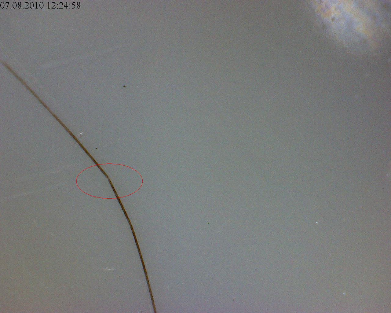 die bilder zeigen ein haar von *gestern*...aufgenommen in 200facher vergrößerung (leicht mit wasser befeuchtet).