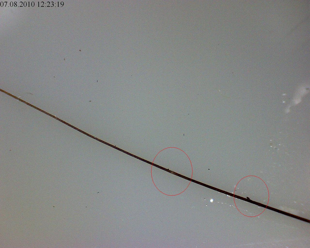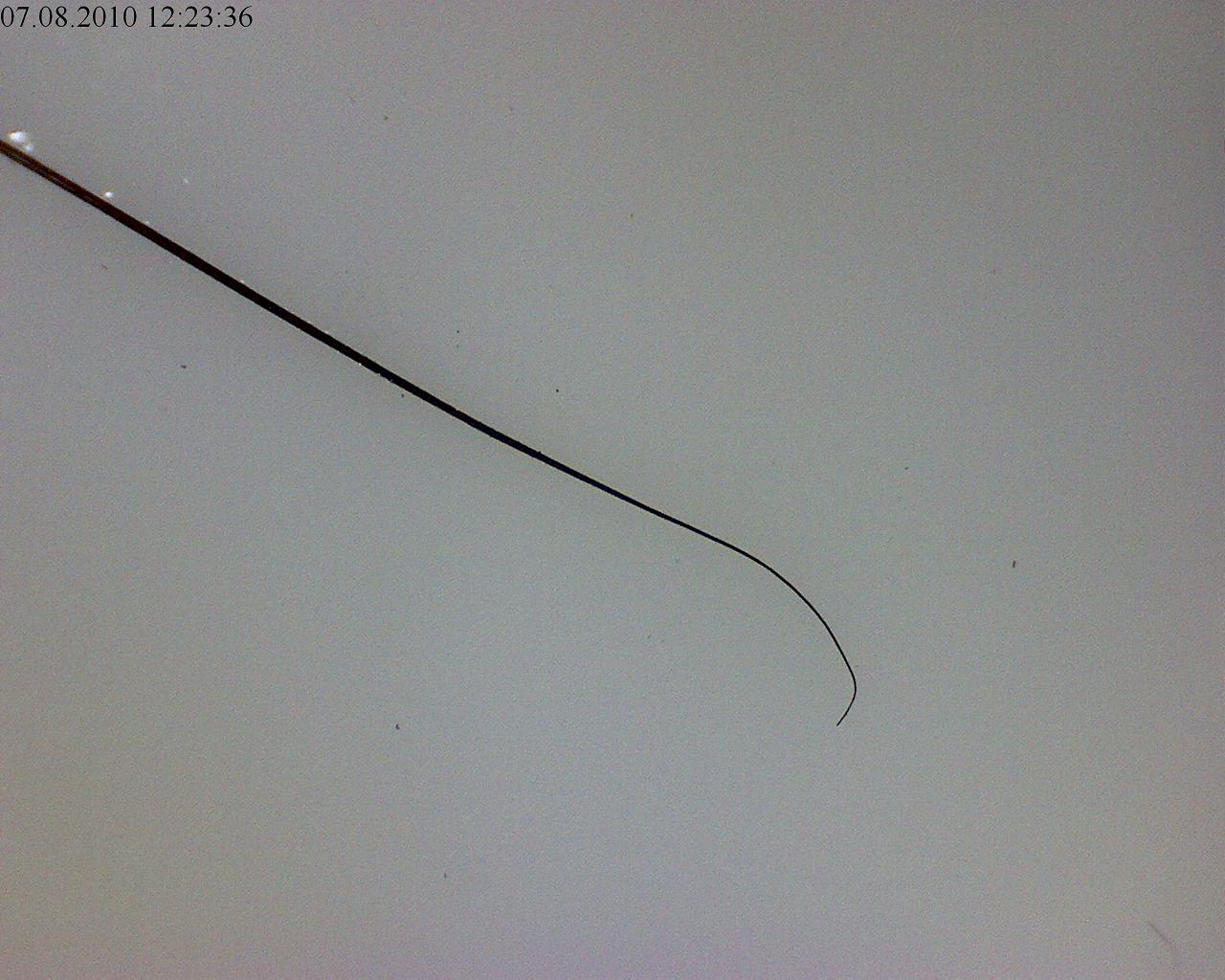 die spitze ist deutlich schwächer...zwischendruch *verdickungsbrüche*...sauber auslaufendes haarende (wurzel)